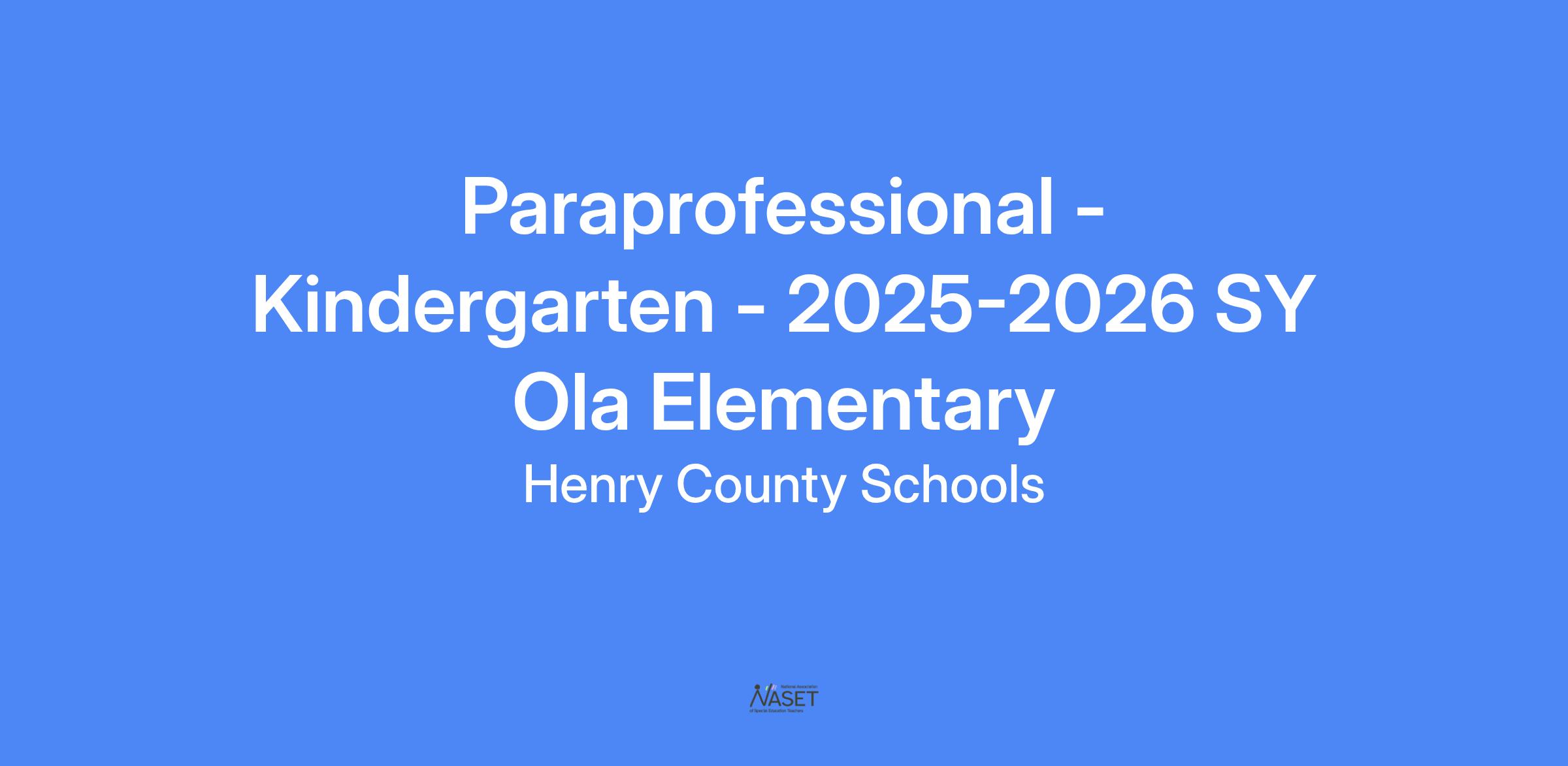 Paraprofessional - Kindergarten - 2025-2026 SY Ola Elementary