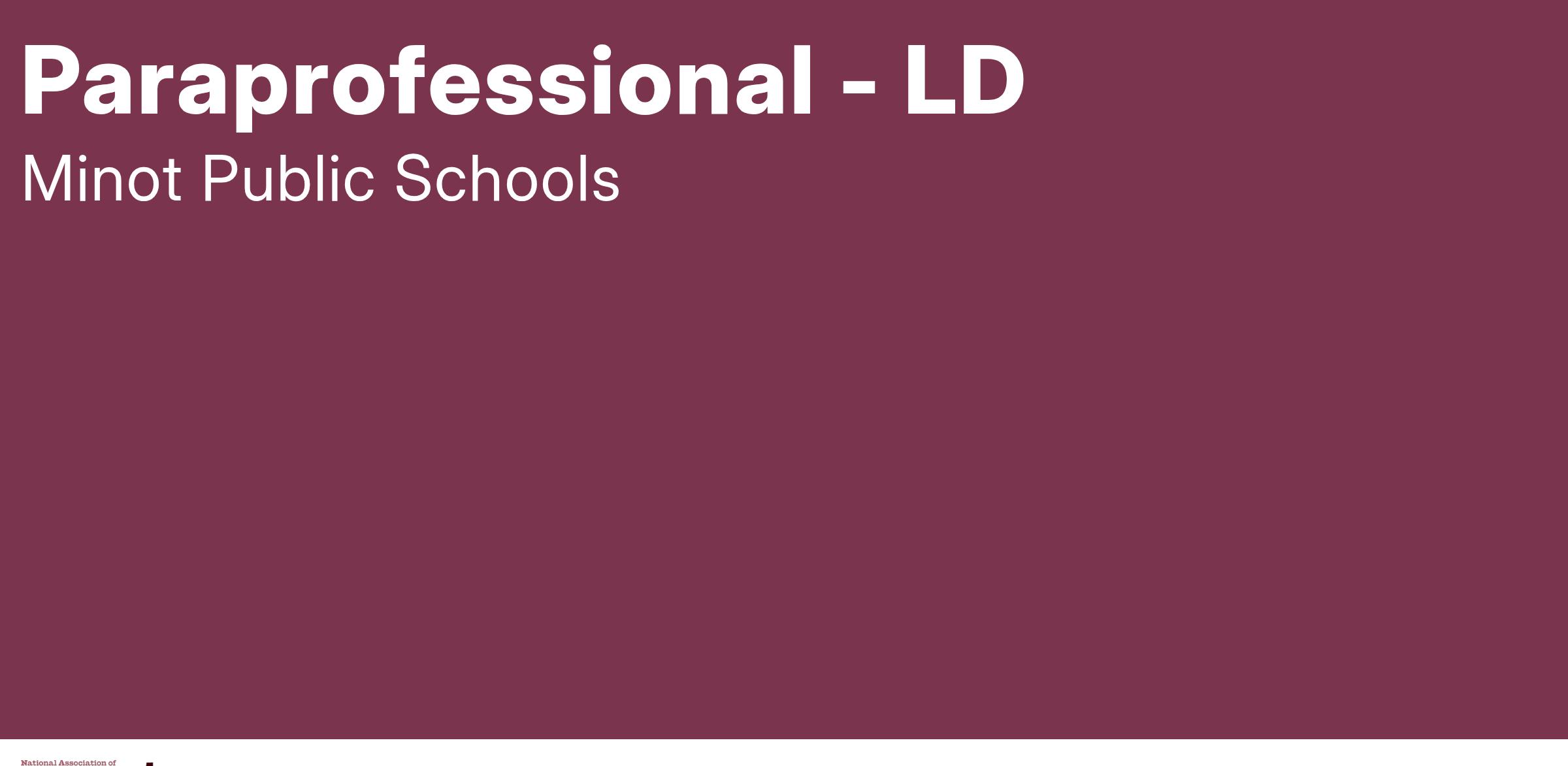 A valid North Dakota State Driver’s License may be required, Paraprofessional certification from North Dakota Department of Public Instruction is required; Crisis Prevention intervention [CPI] training and certification may be required for some incumbents; CPR and First Aid training is preferred.