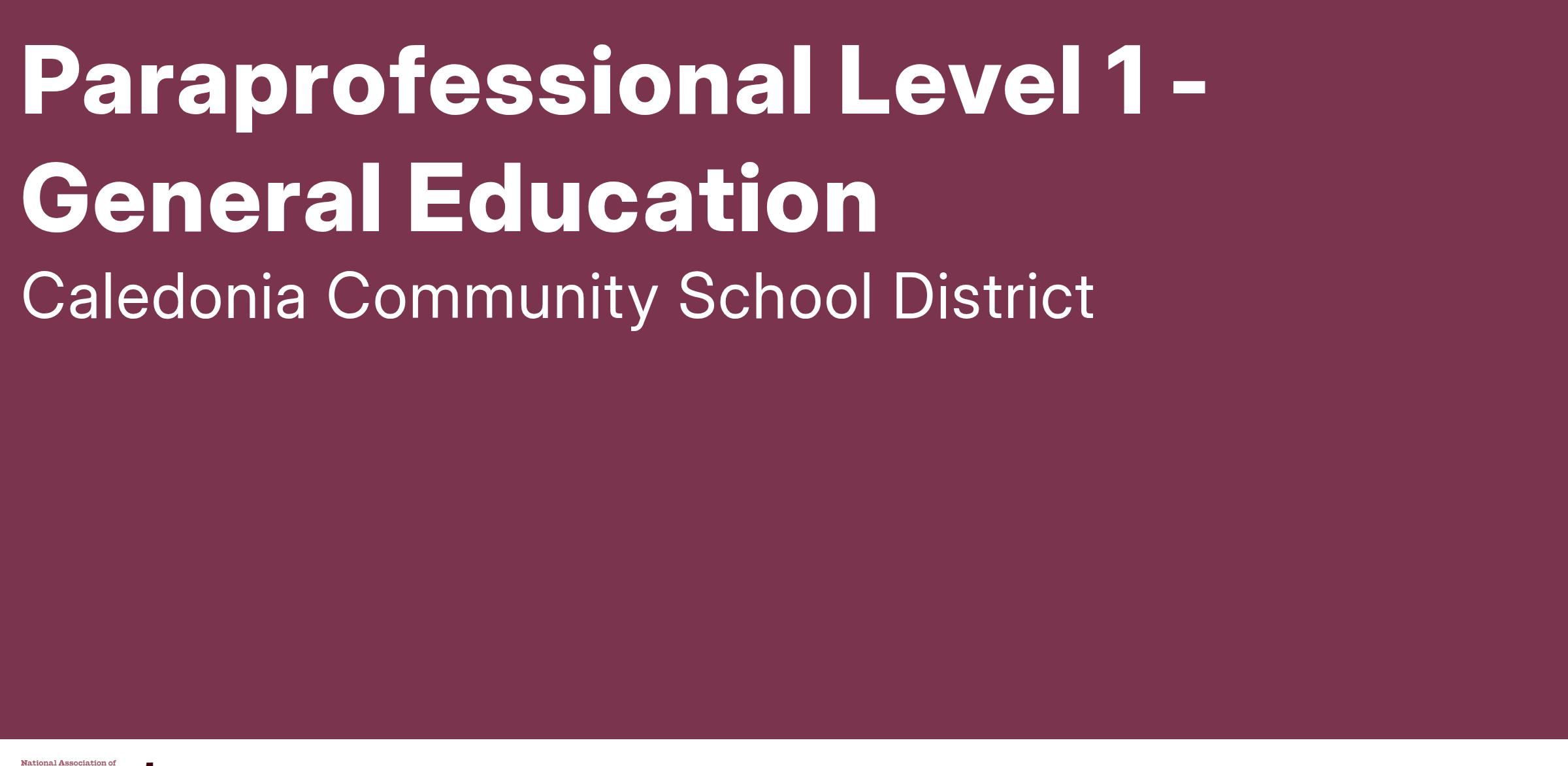 Position: Level 1 Paraprofessional (General Education) Multiple Positions