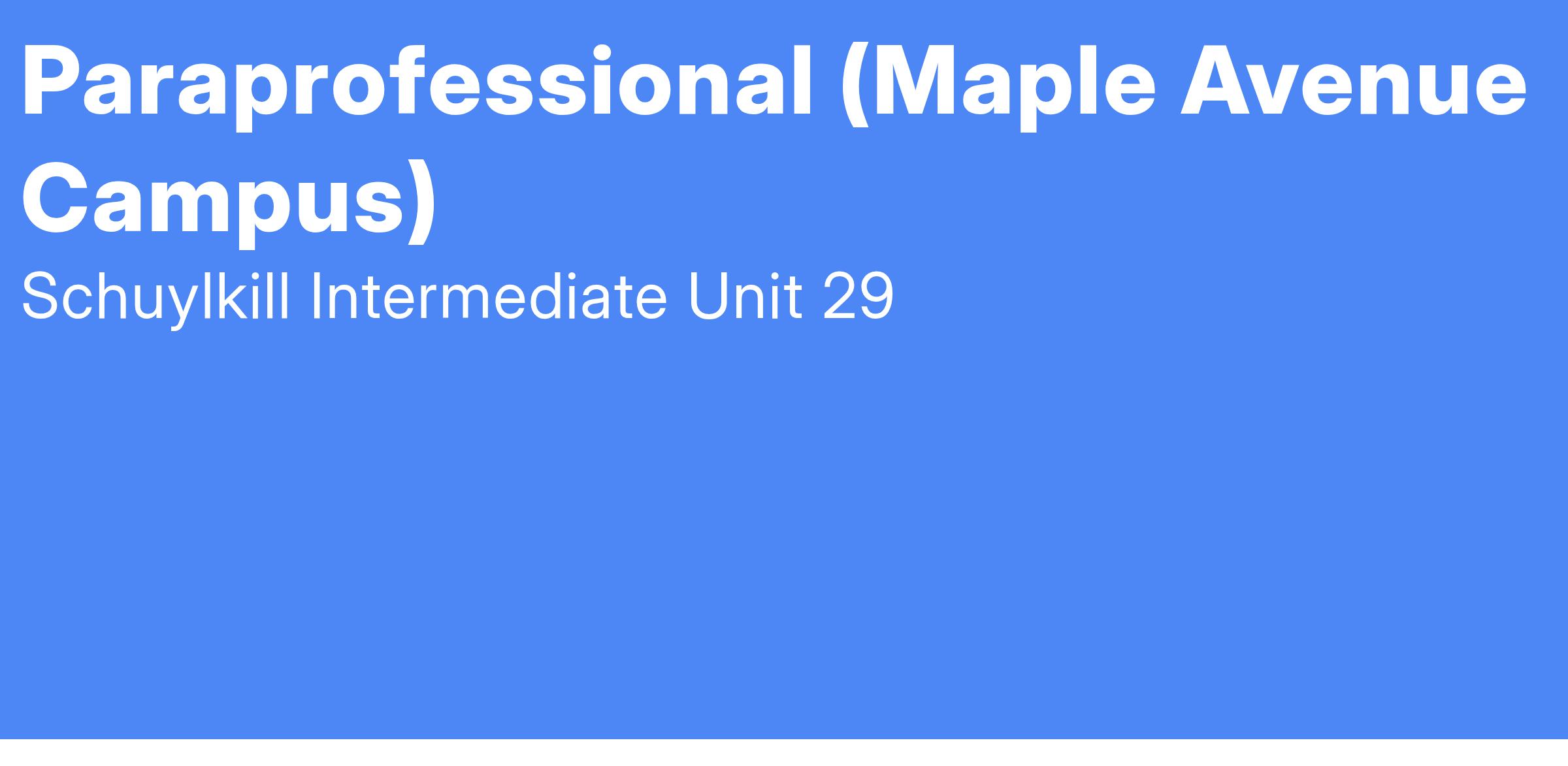 The Schuylkill Intermediate Unit #29 is looking to fill several Part-Time Paraprofessional positions within the Early Intervention Department and at the Maple Avenue Campus.