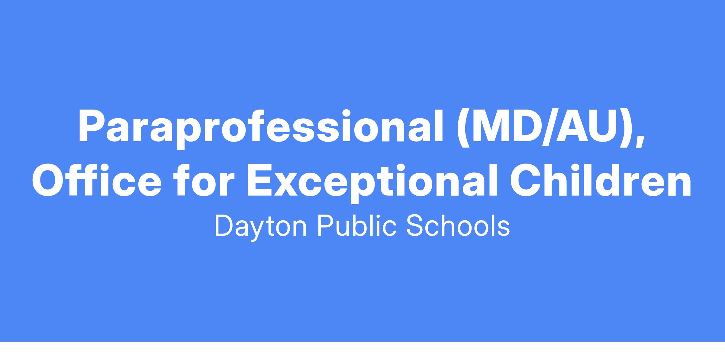 Dayton Public Schools is looking for Paraprofessionals to join our district. Under the general supervision of the building principal, paraprofessionals are to assist in the education and learning of our students.