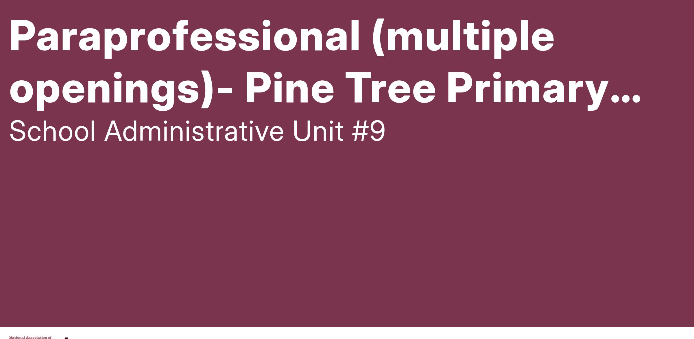Paraprofessional (multiple openings)- Pine Tree Primary School