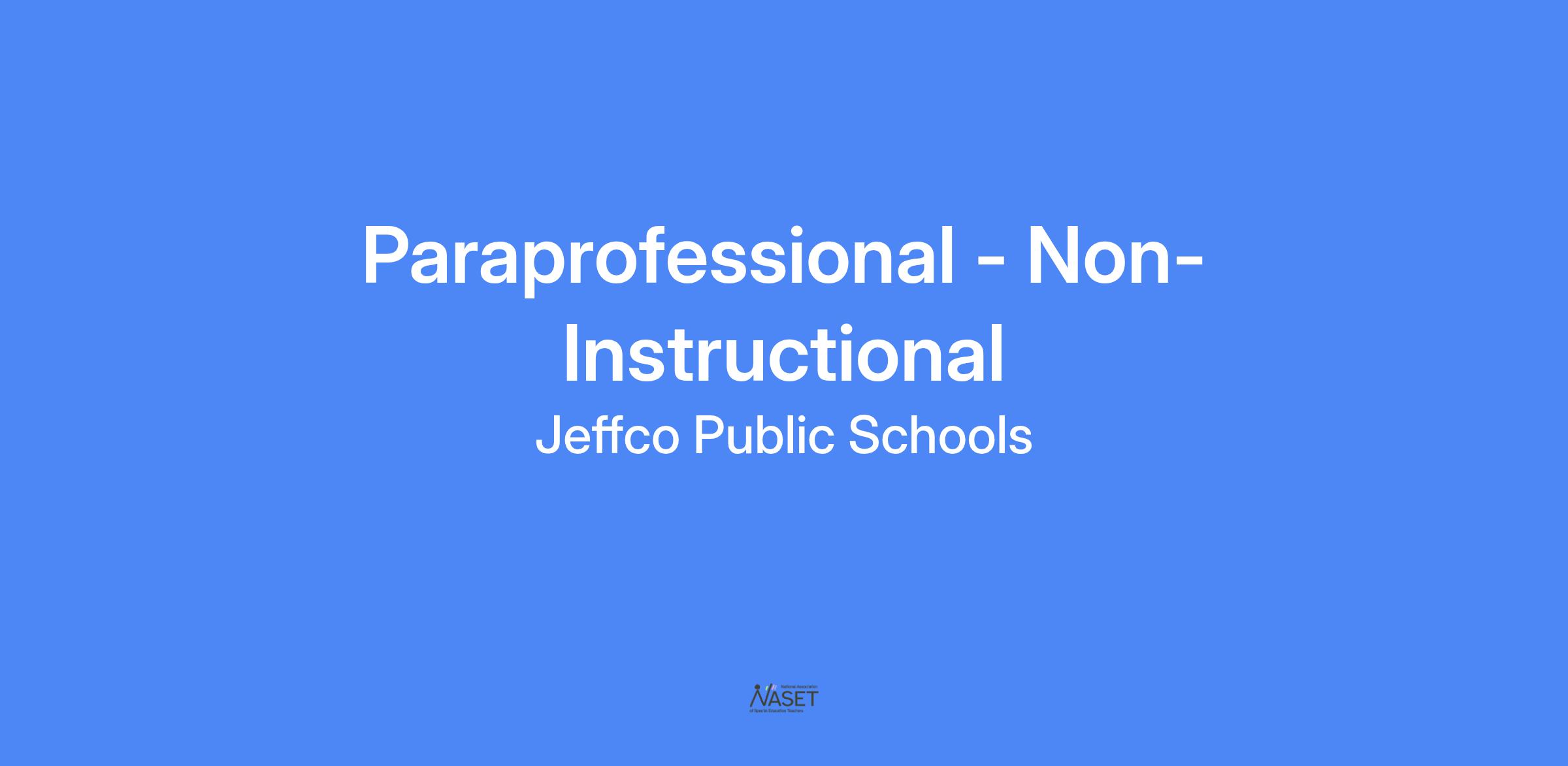 EDUCATION AND TRAINING: High school diploma/GED required. Jeffco paraprofessional training will be offered upon acceptance of a position and must be completed at first available training opportunity.