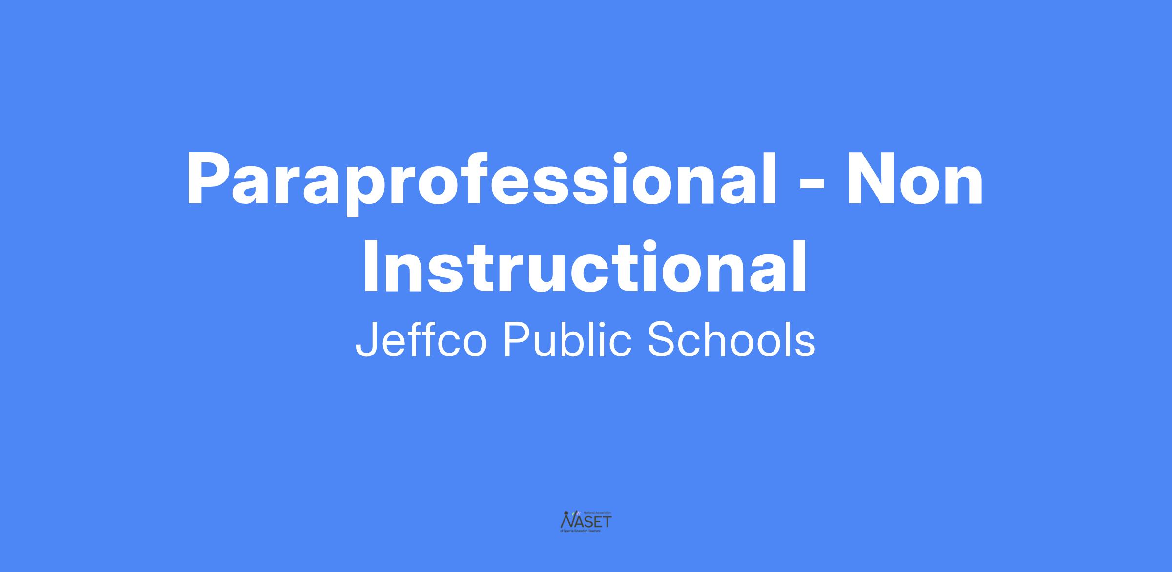 EDUCATION AND TRAINING: High school diploma/GED required. Jeffco paraprofessional training will be offered upon acceptance of a position and must be completed at first available training opportunity.