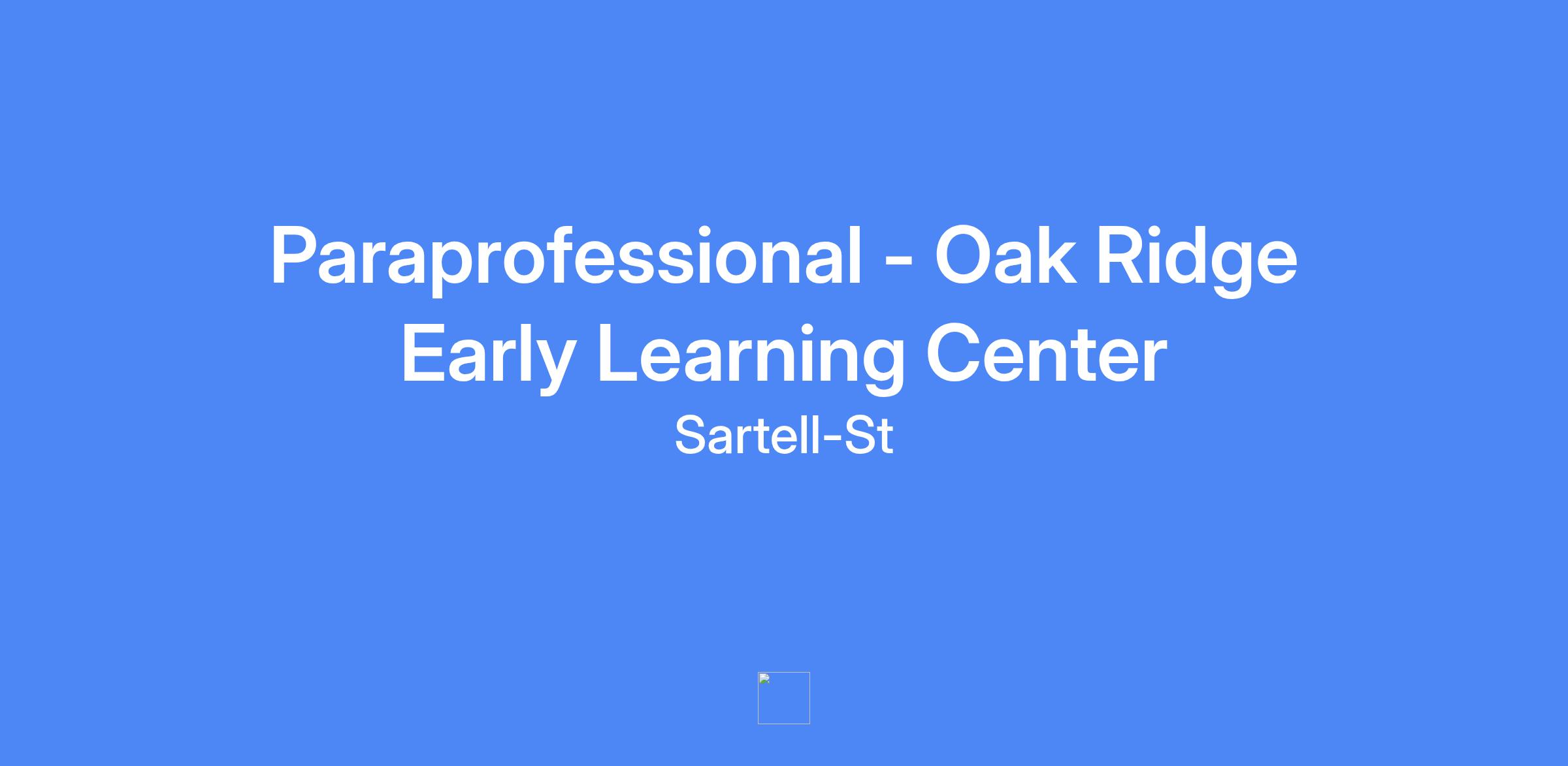 Paraprofessional Location: Oak Ridge Early Learning Center Sartell-St. Stephen School District Hours: 7:30am - 2:30pm (6.5 hrs/day) Contract Days: Student School Days