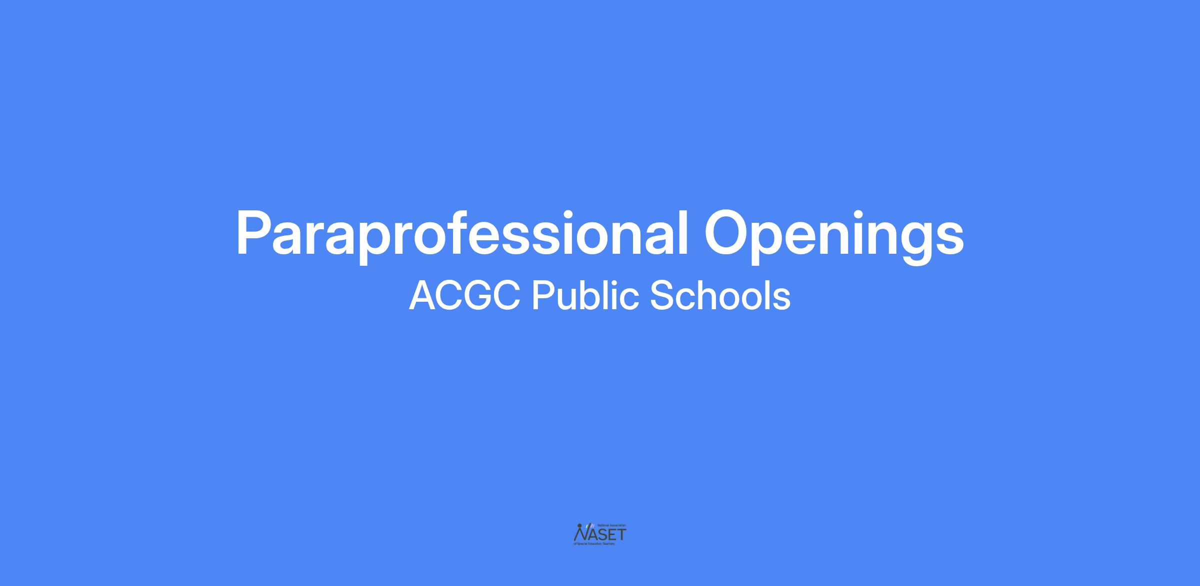 ACGC IS NOW TAKING APPLICATIONS FOR PARAPROFESSIONALS
