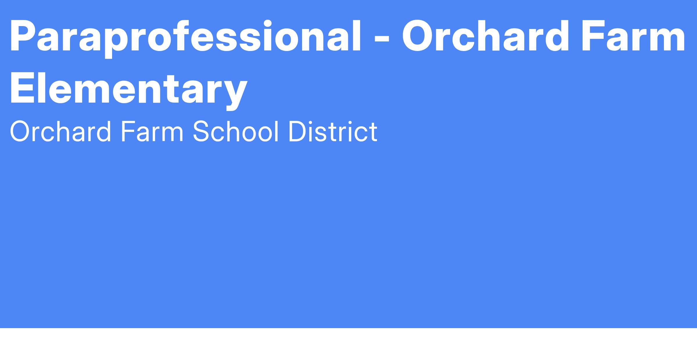 Orchard Farm Elementary School is seeking multiple paraprofessionals to join our team for the 2025-2026 school year!