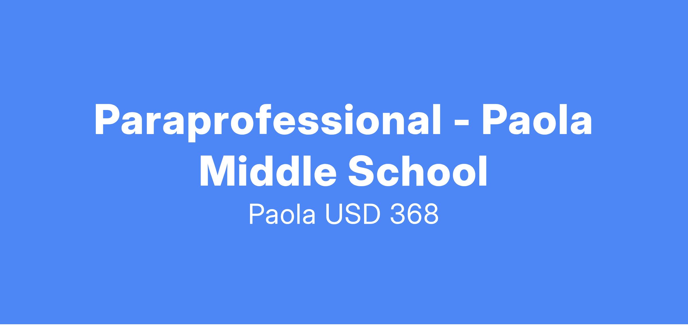 USD 368 is seeking applicants for special education paraprofessionals to work in general education classrooms at Paola Middle School. This position serves 6th through 8th grade, Special Education students in a general education classroom setting.