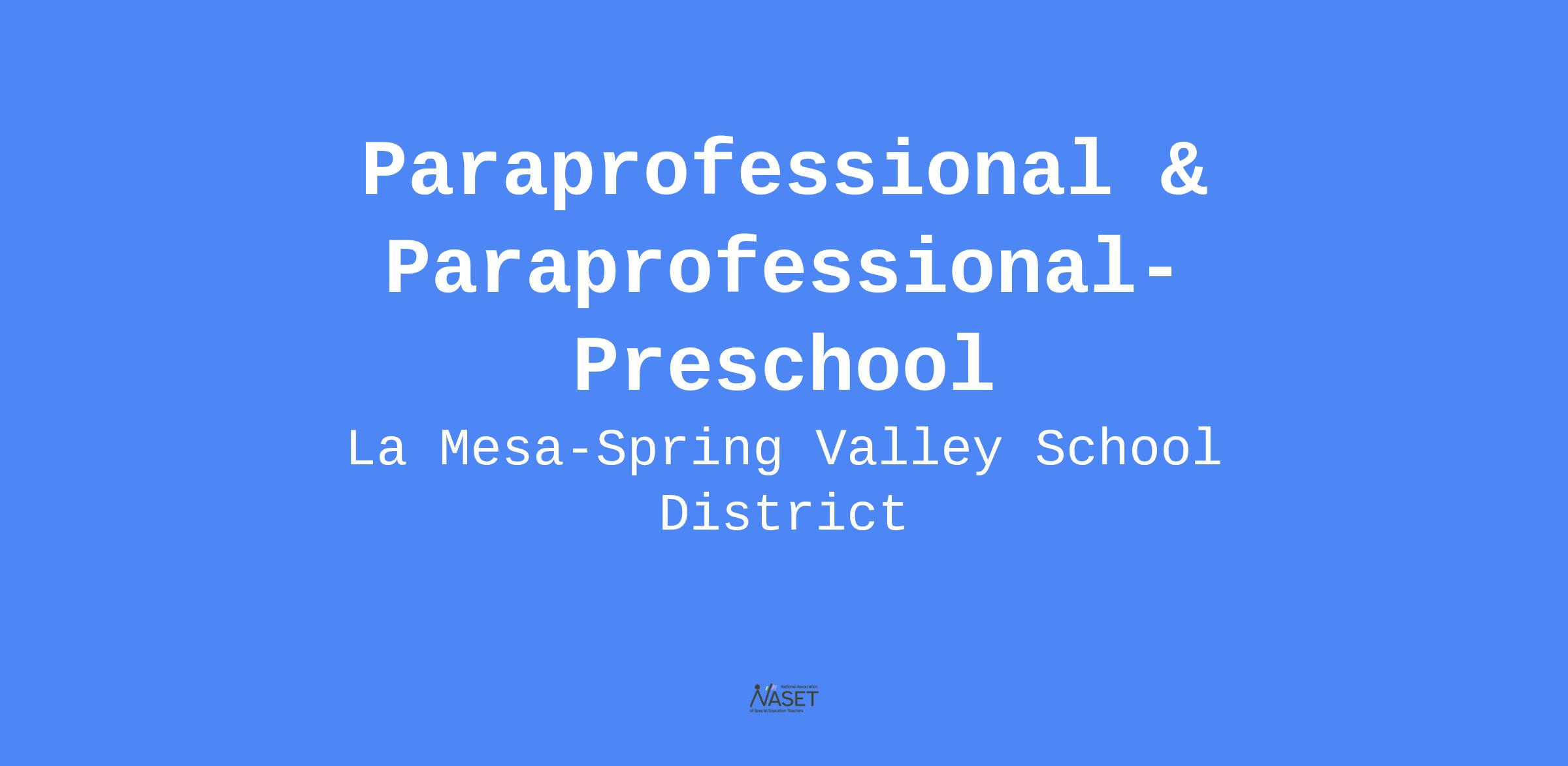 An examination will be given to establish an eligibility list for the position of Paraprofessional & Paraprofessional-Preschool in order to fill existing and future vacancies. These positions are part-time, 3.75 - 6.0 hours per day, August through June, 206 paid days per year. The eligibility list will be valid for 6 months or until exhausted (whichever comes first).