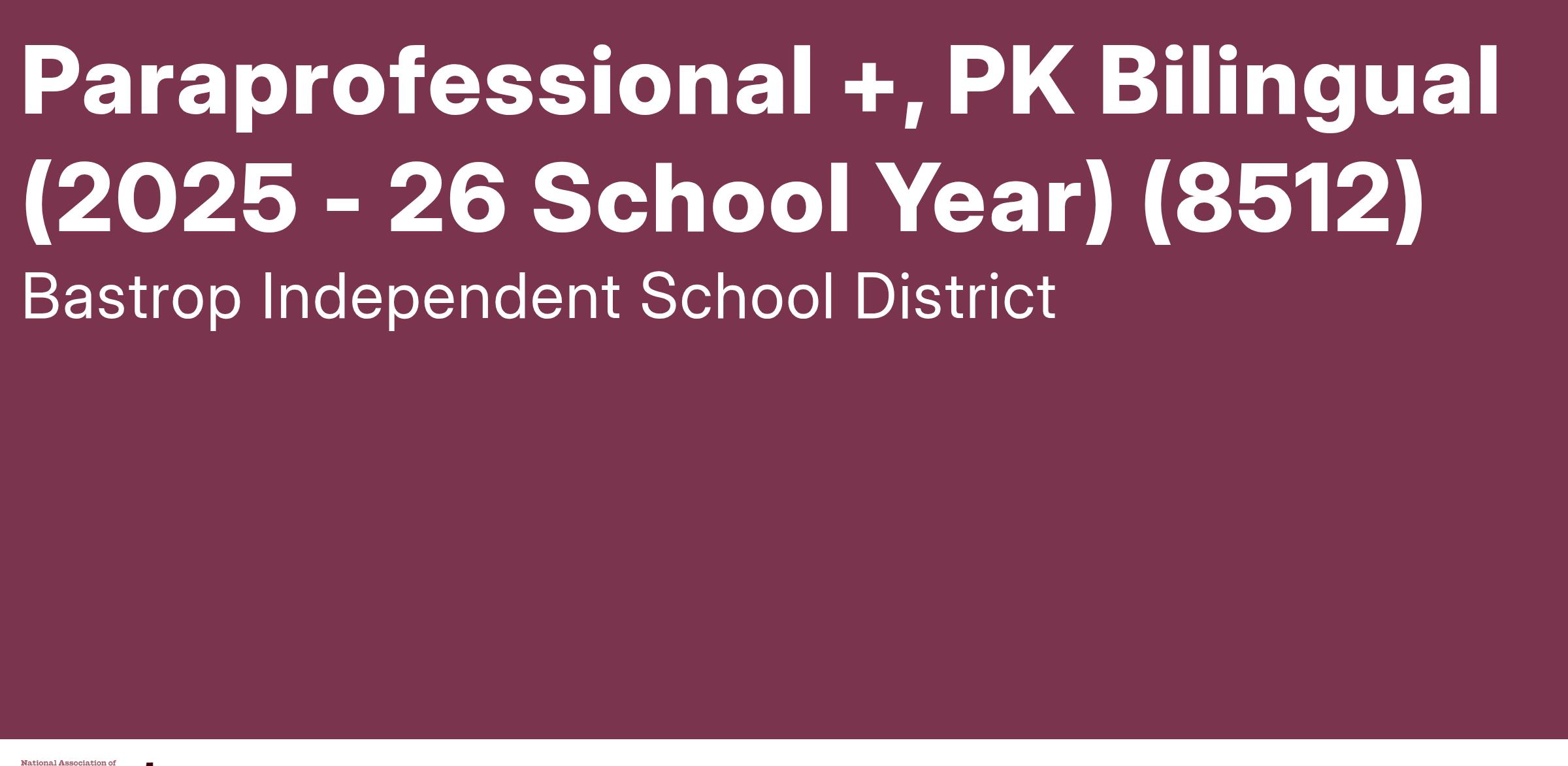 Paraprofessional +, PK Bilingual (2025 - 26 School Year) (8512)