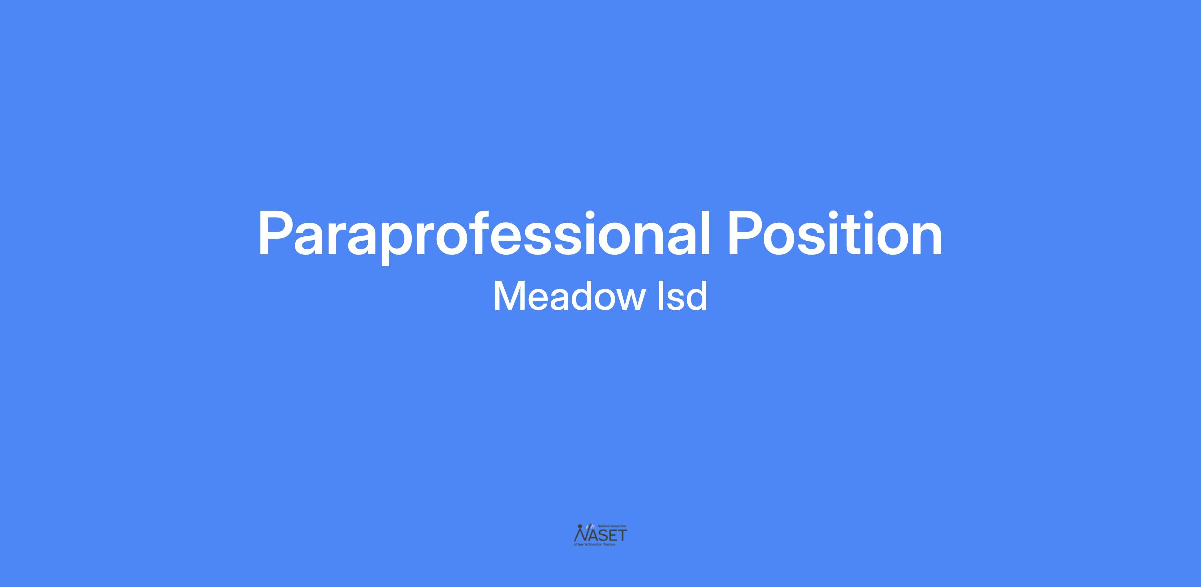 Meadow ISD is seeking a paraprofessional position for the following: