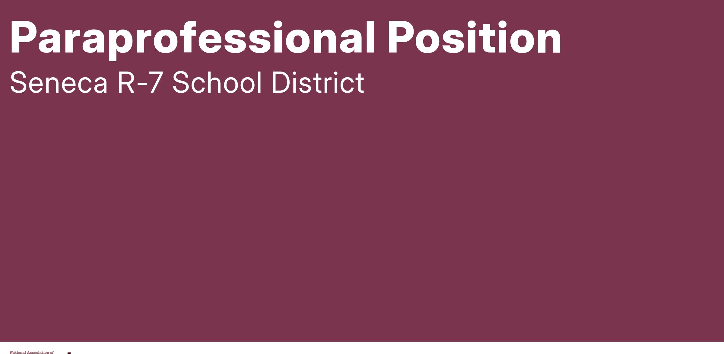 Seneca Special Services is taking applications for Paraprofessional. Applicants must have 36 college hours credit hours and either hold a substitute certicate from DESE or complete the Frontline Training in order to obtain a substitute certificate. Other extracurricular duties may be available. Interested applicants should go to www.senecar7.com and apply online. Position will be open until filled.