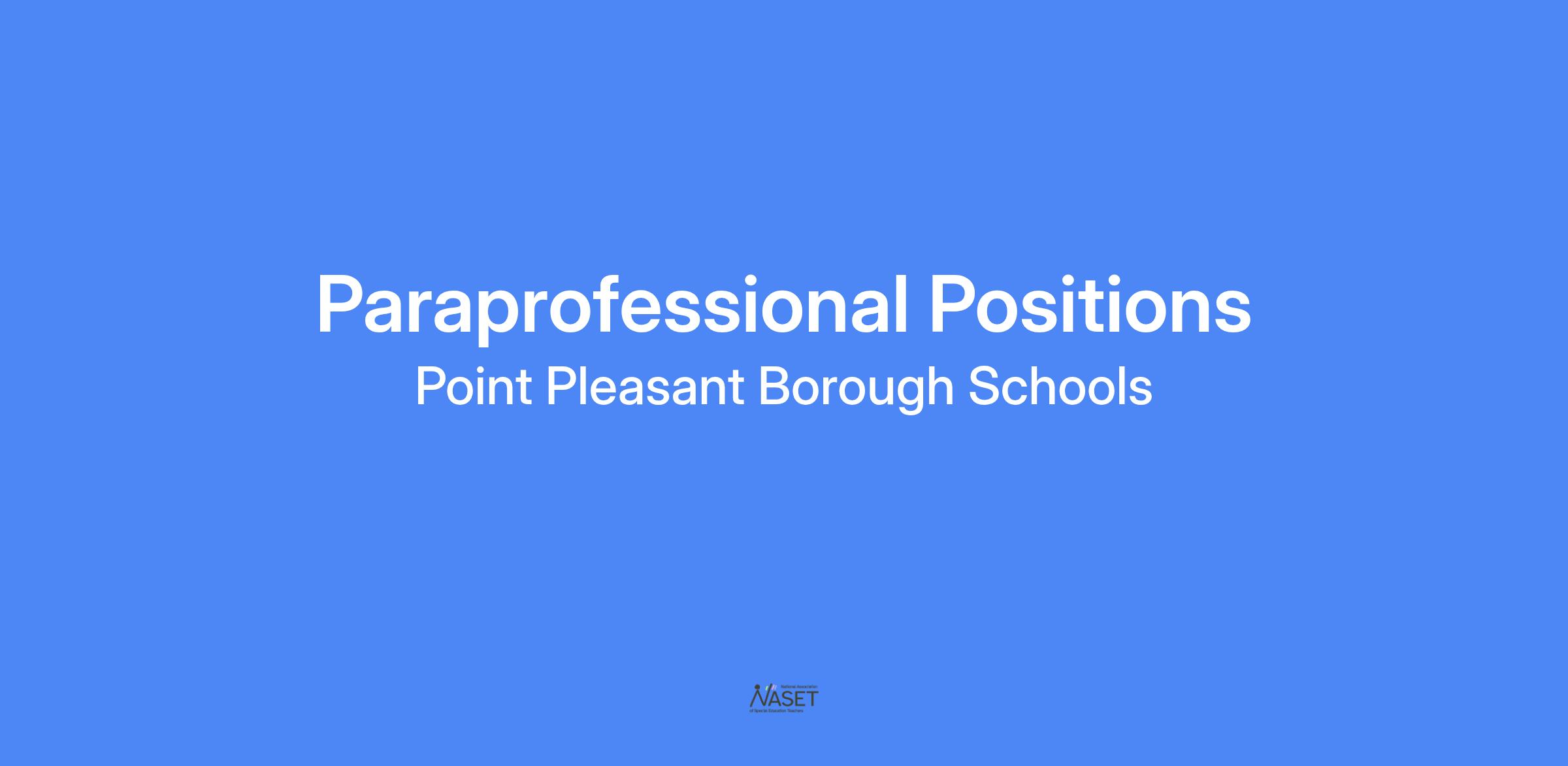 The Point Pleasant School District is looking for full-time instructional paraprofessionals and playground aides for the current school year!