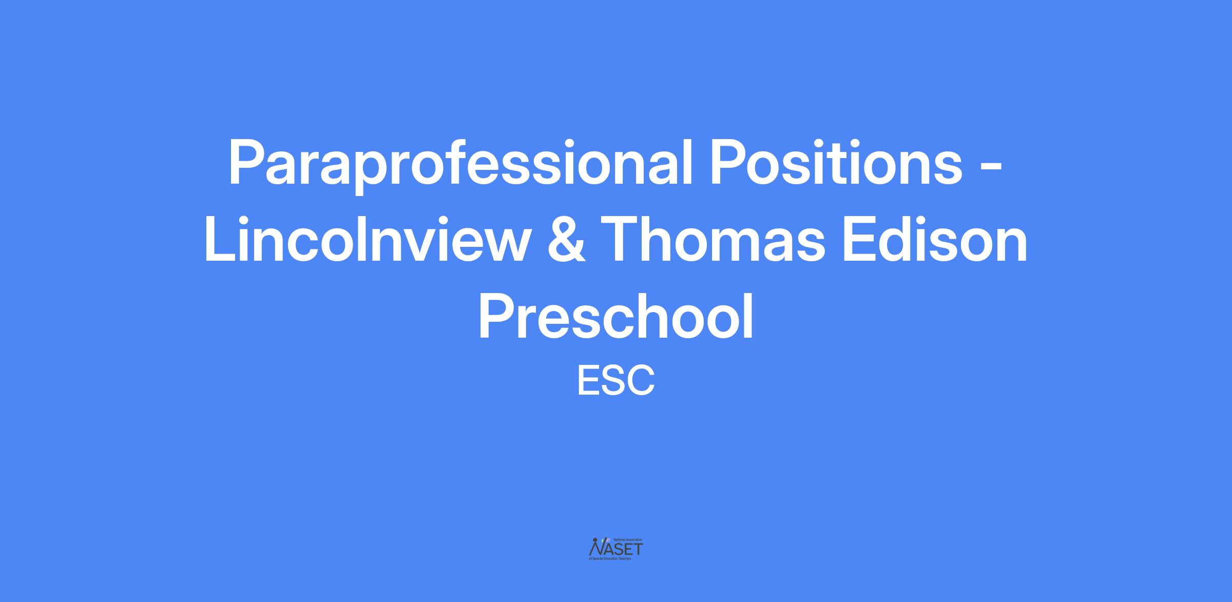 Paraprofessional Positions - Lincolnview & Thomas Edison Preschool