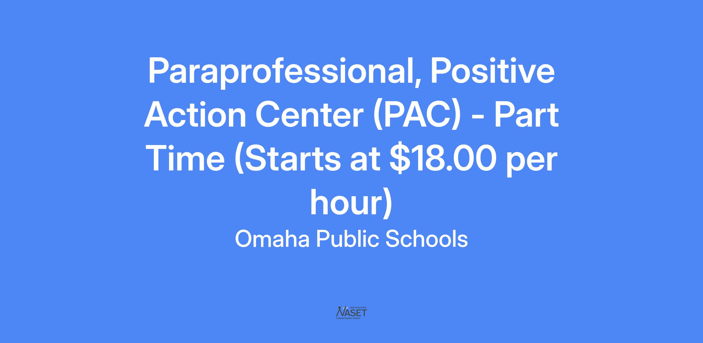 Job Title: Paraprofessional, Positive Action Center (PAC) - Part Time