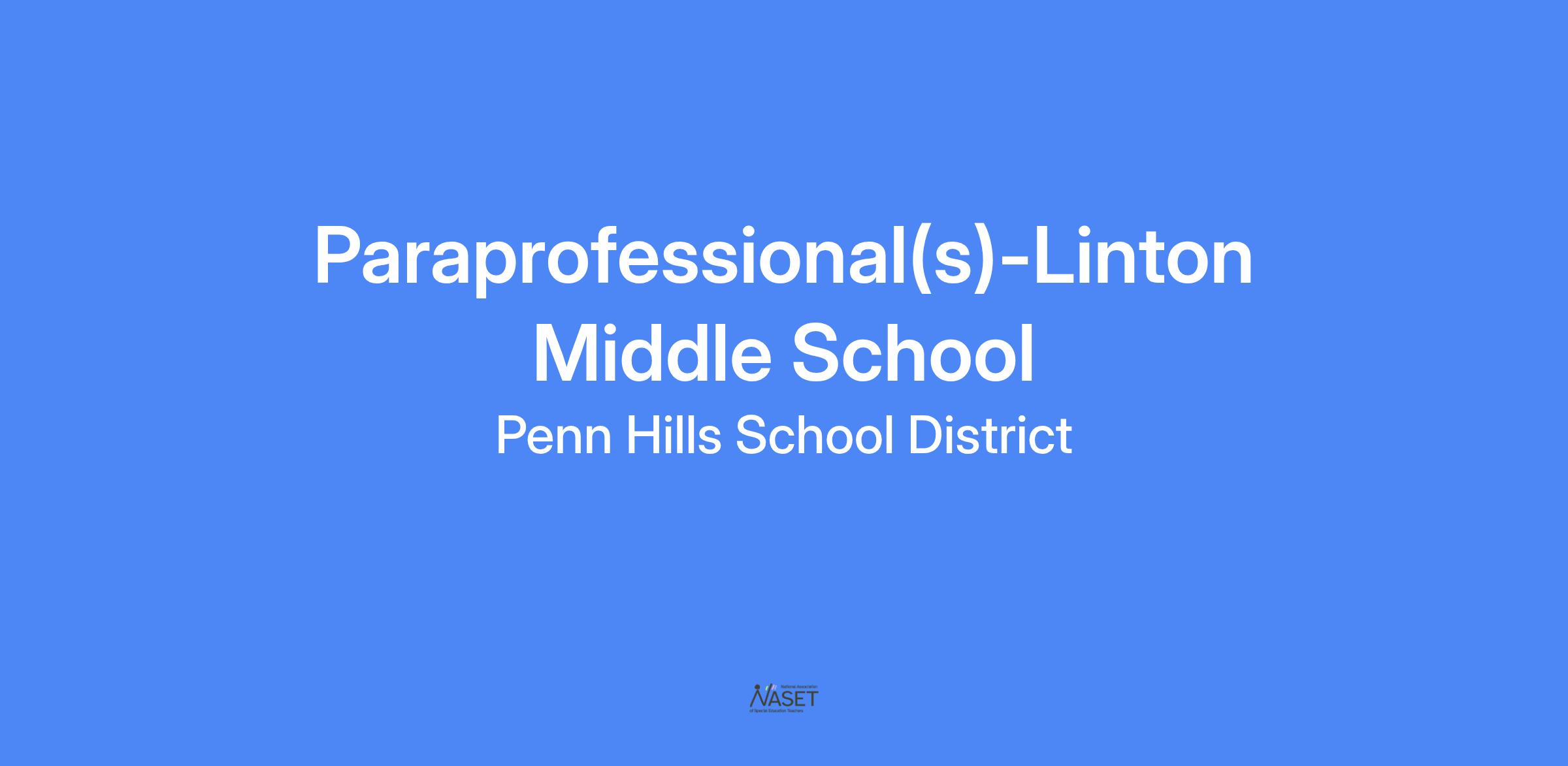 The Penn Hills School District, located in the eastern suburbs of Pittsburgh, is currently seeking Paraprofessional(s) for an intensive support 6-8 classroom.