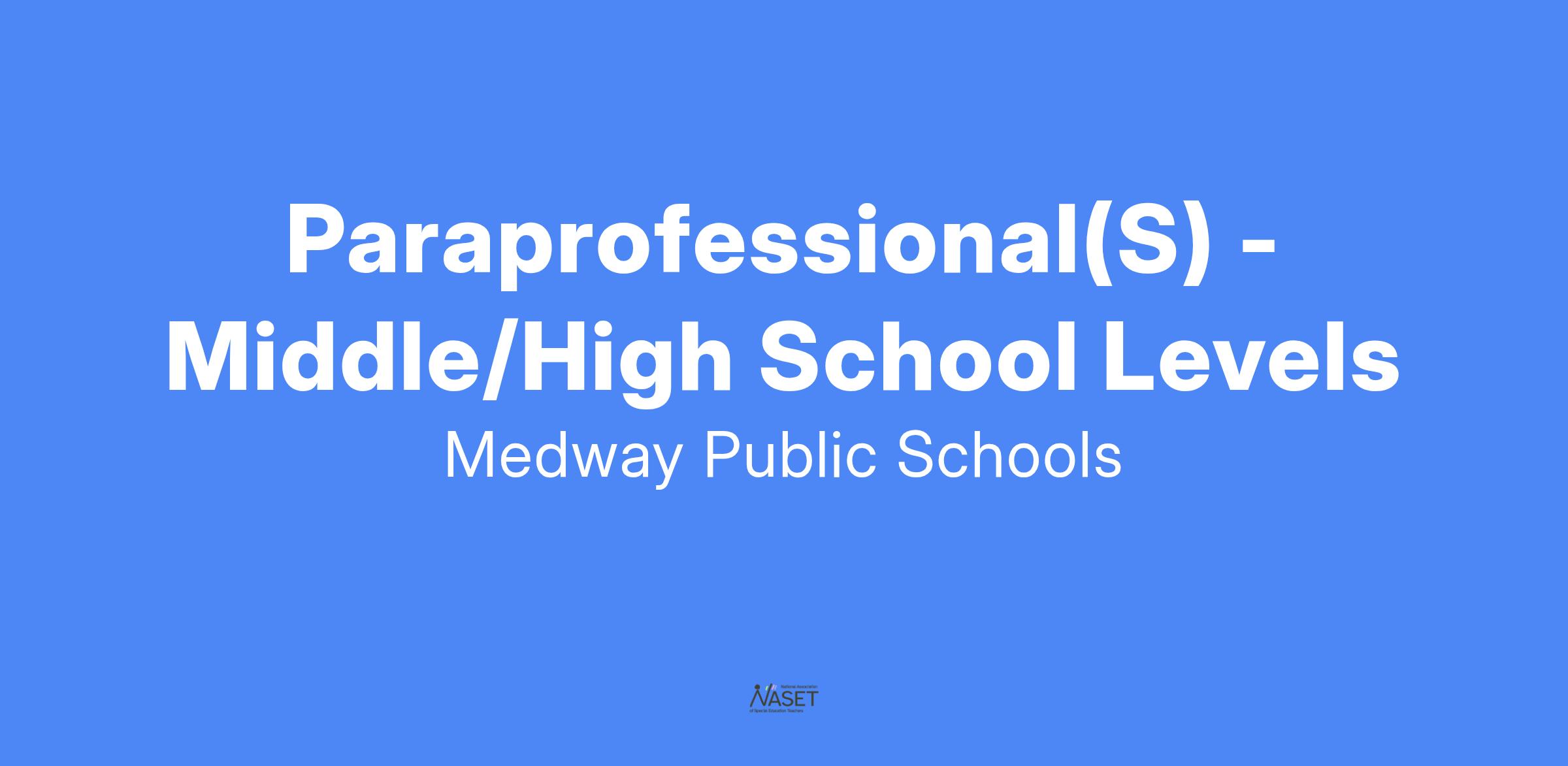 Medway Public Schools is seeking to fill various Paraprofessional roles for the 2025-2026 school year.