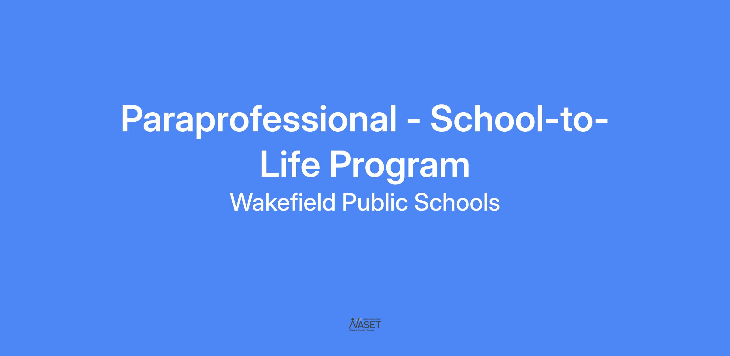 Position Title: Paraprofessional - School-to-Life