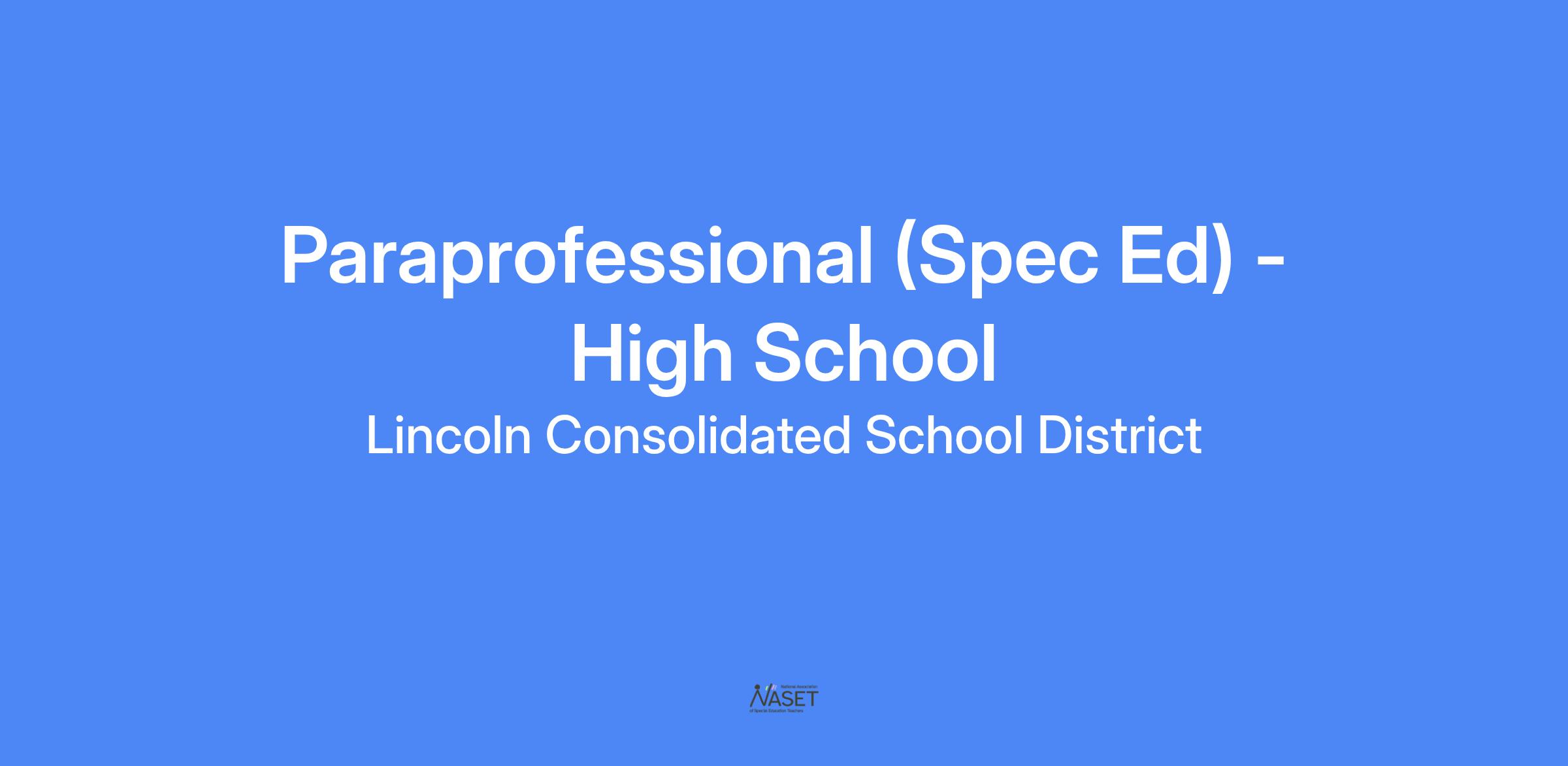POSITION: PARAPROFESSIONAL, SPEC ED - HIGH SCHOOL