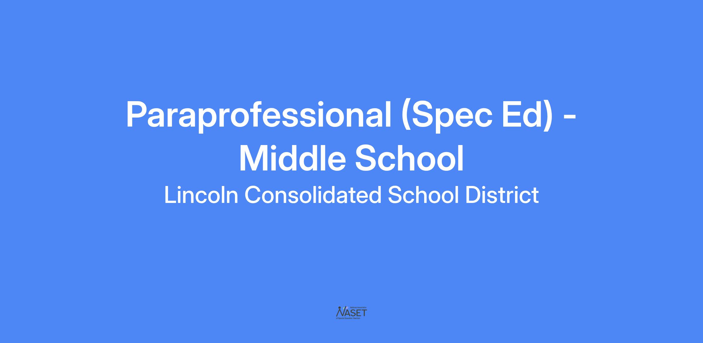 POSITION: PARAPROFESSIONAL, SPEC ED - MIDDLE SCHOOL