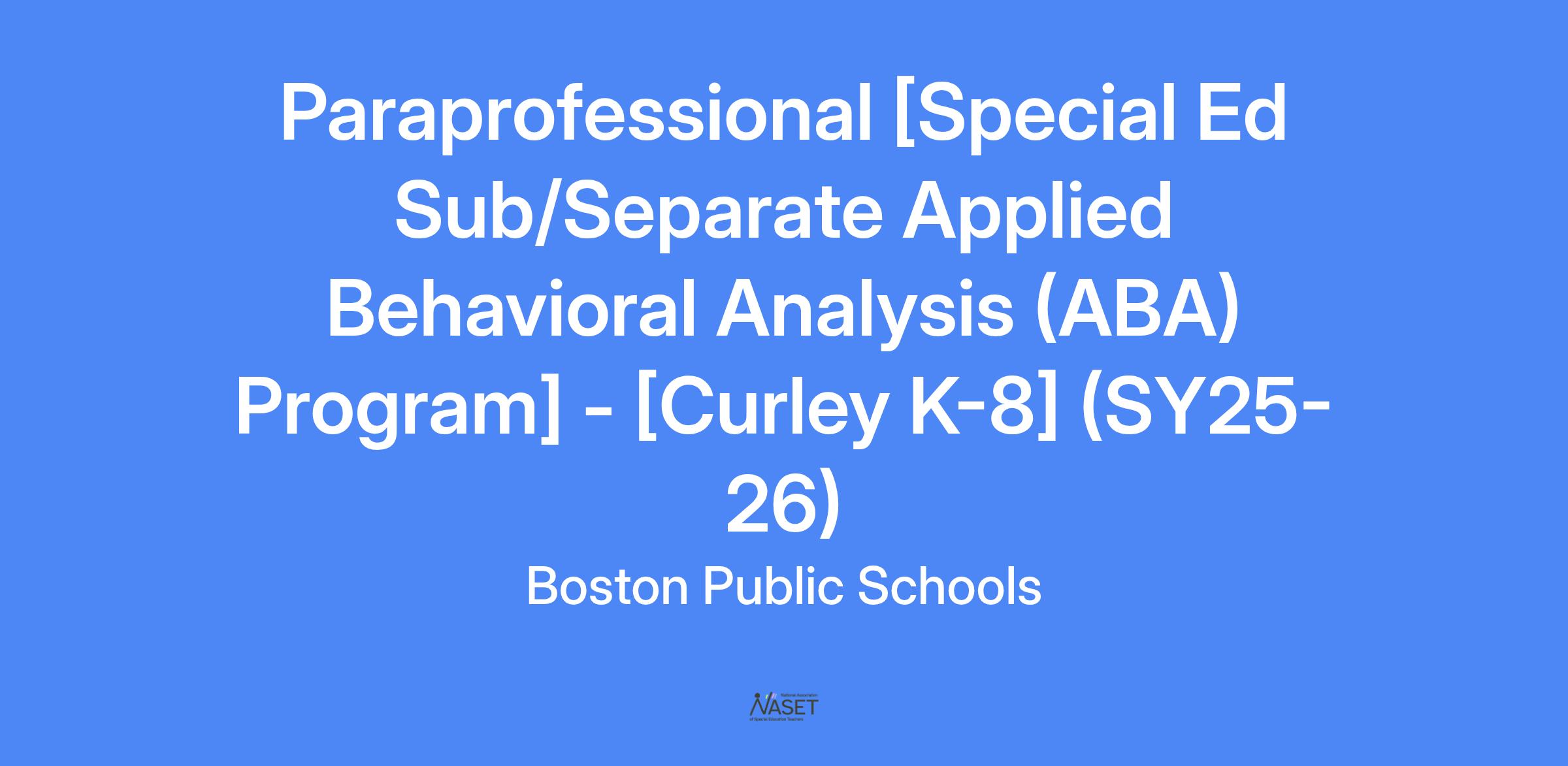 Paraprofessional [Special Ed Sub/Separate Applied Behavioral Analysis (ABA) Program] - [Curley K-8] (SY25-26)