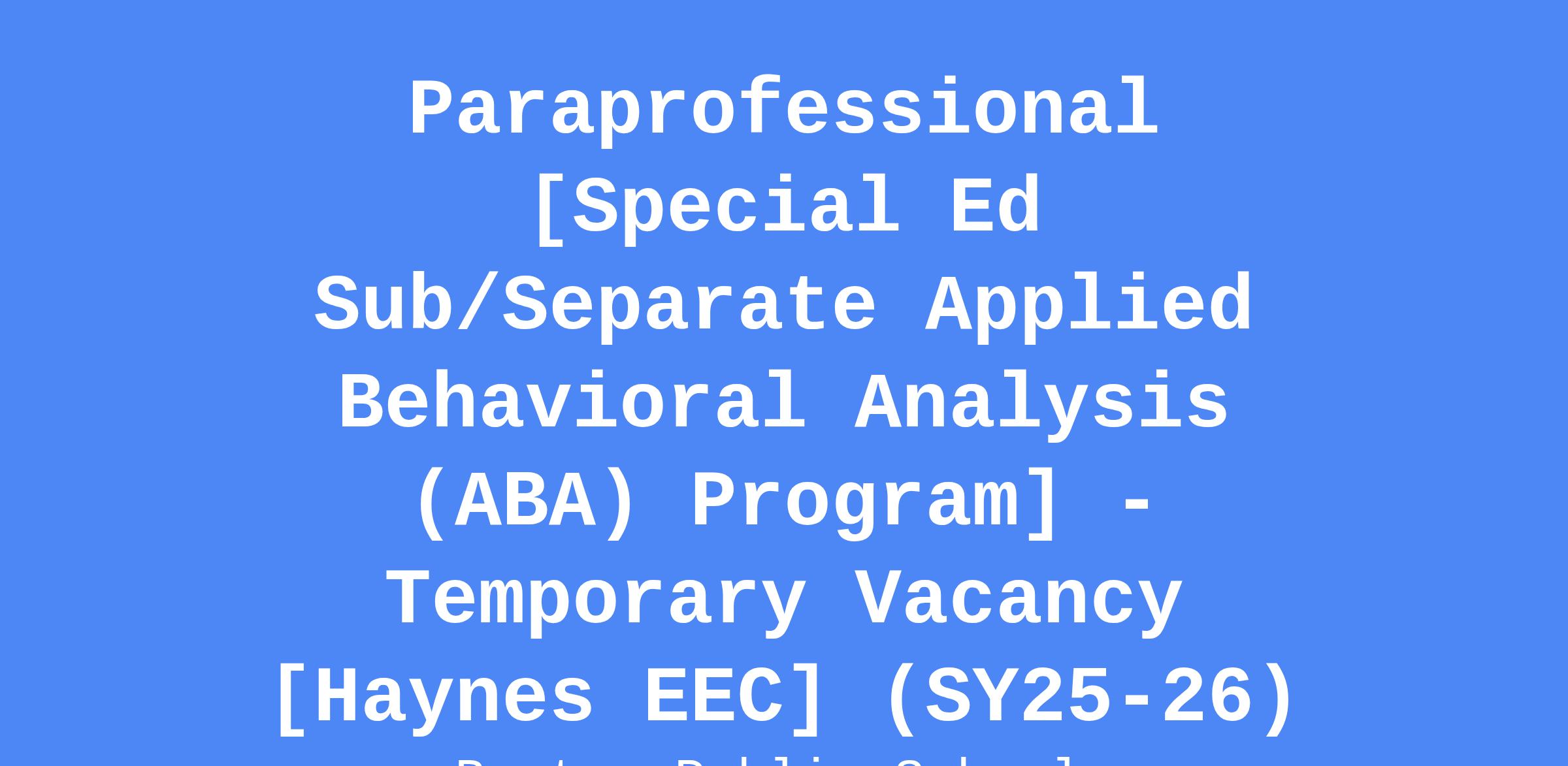 Paraprofessionals will assist teachers in providing an innovative, high quality education program designed to meet the needs of the children in the Boston Public Schools. Paraprofessionals will work with school staff to create an educational environment in which quality and continuity are key factors in educating the students of the Boston Public Schools.