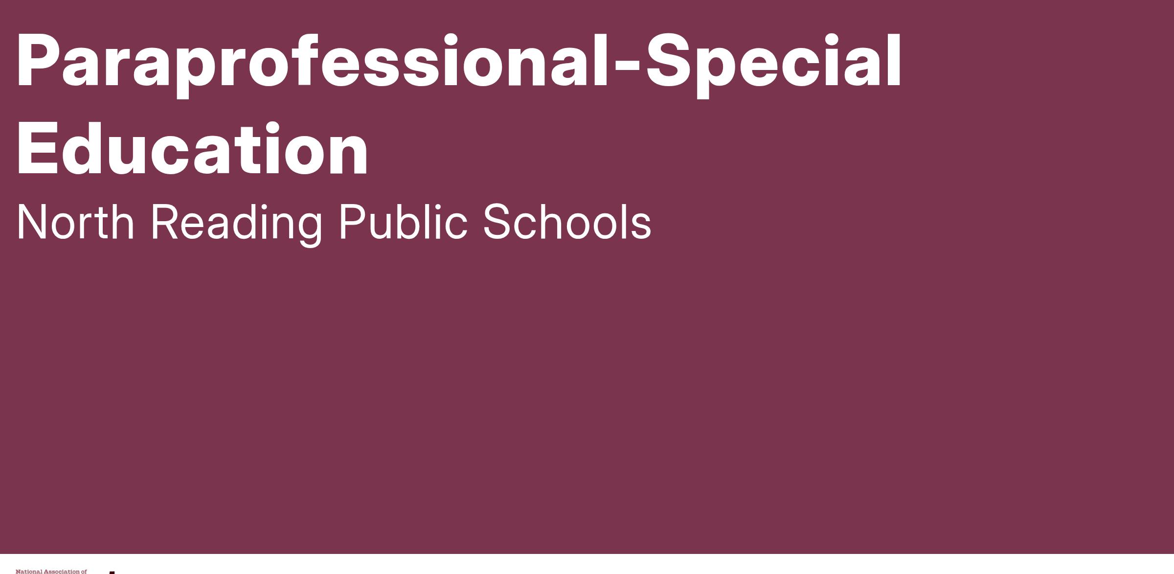 The E. Ethel Little Elementary School is seeking a full time Special Education Paraprofessional. North Reading Public Schools is actively looking to build a diverse workforce to ensure all students feel welcome, safe, and valued for who they are and supported to reach their potential.