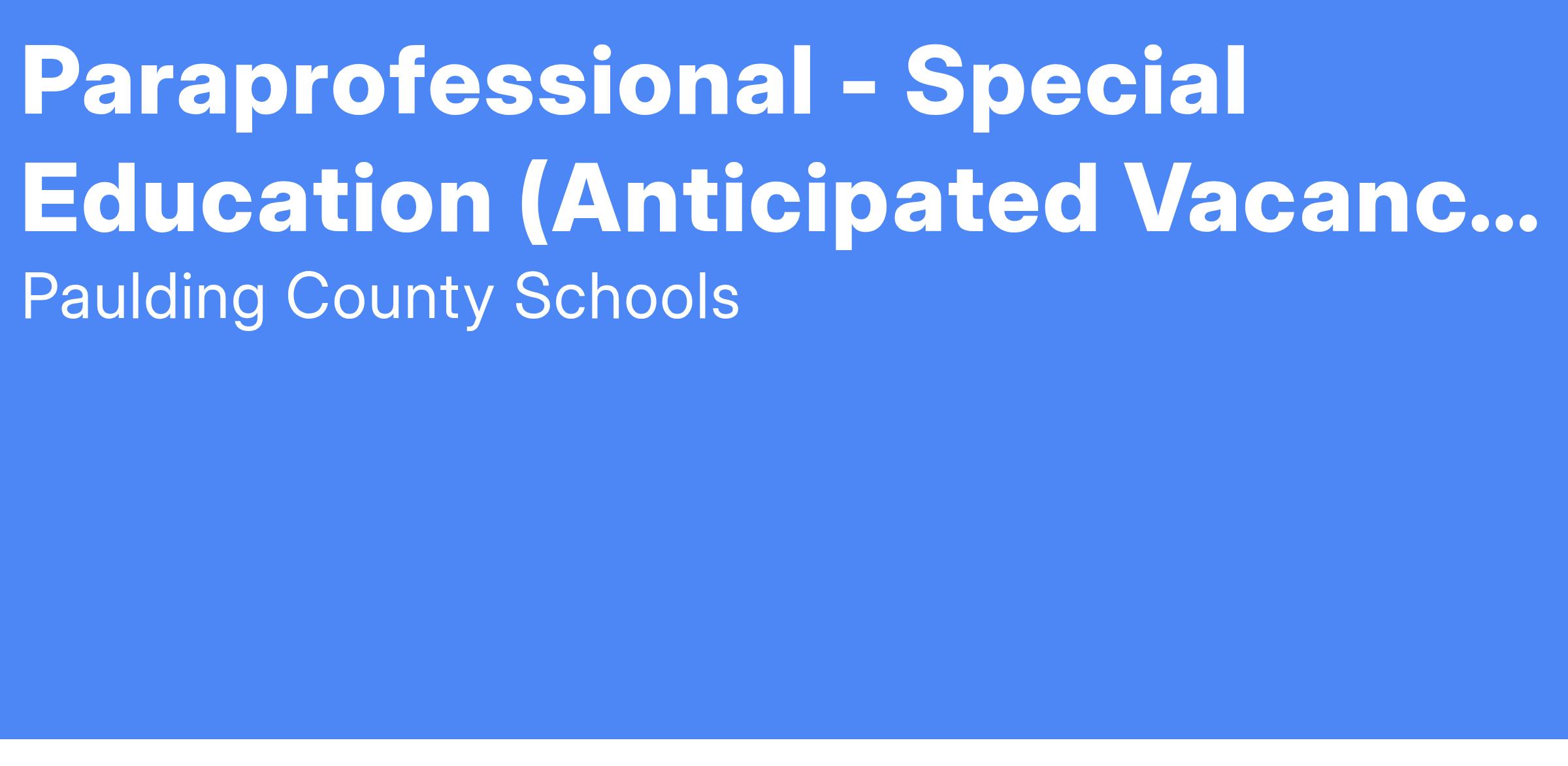 Thank you for your interest in our Paraprofessional - Special Education position