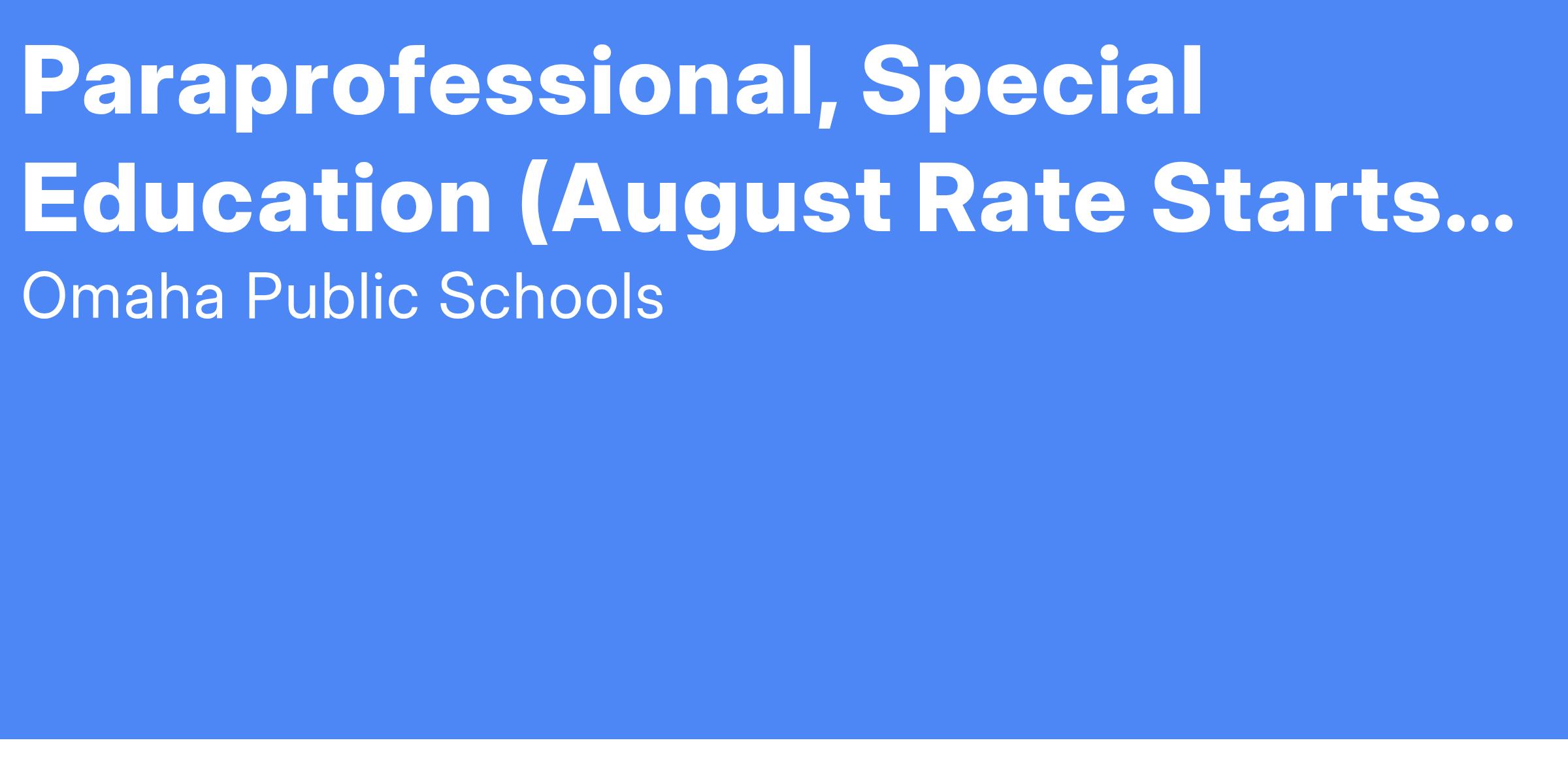 The Omaha Public School District is committed to providing access and reasonable accommodation in its services, programs, activities, education and employment for individuals with disabilities. To request disability accommodation in the application process please contact the human resources department at 531-299-0240.