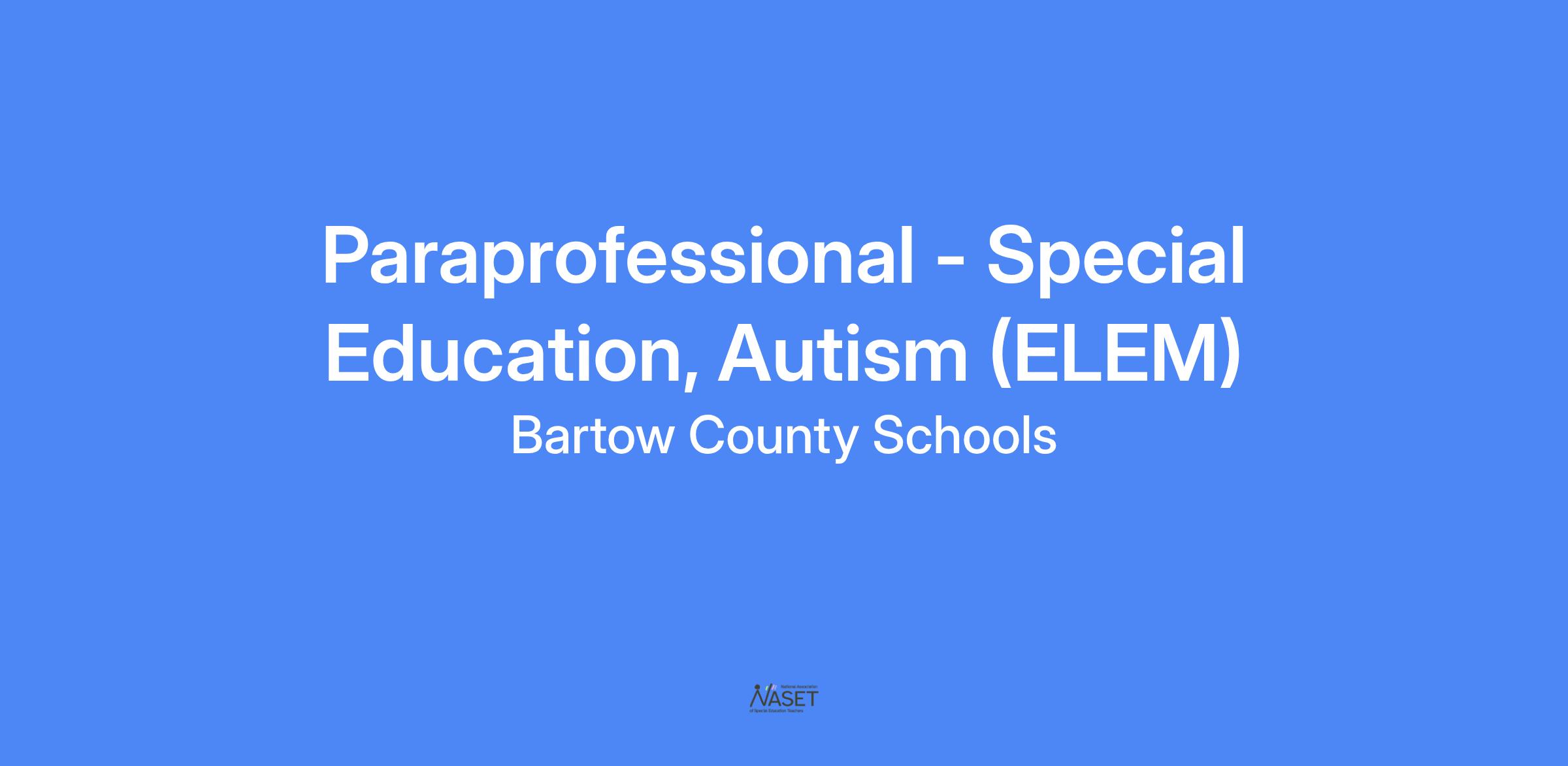 POSITION TITLE: Paraprofessional - Special Education, Autism for the 2025-2026 School Year