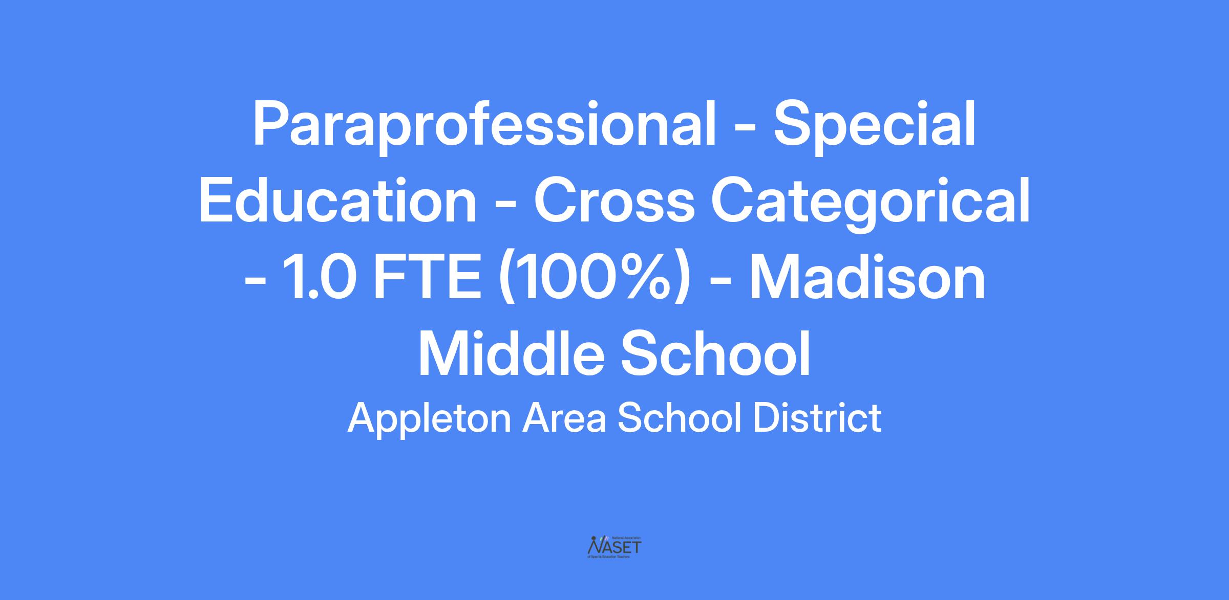 The Appleton Area School District has a position available for a 1.0 FTE (100%) Special Education Cross Categorical Paraprofessional at Madison Middle School beginning as soon as possible.