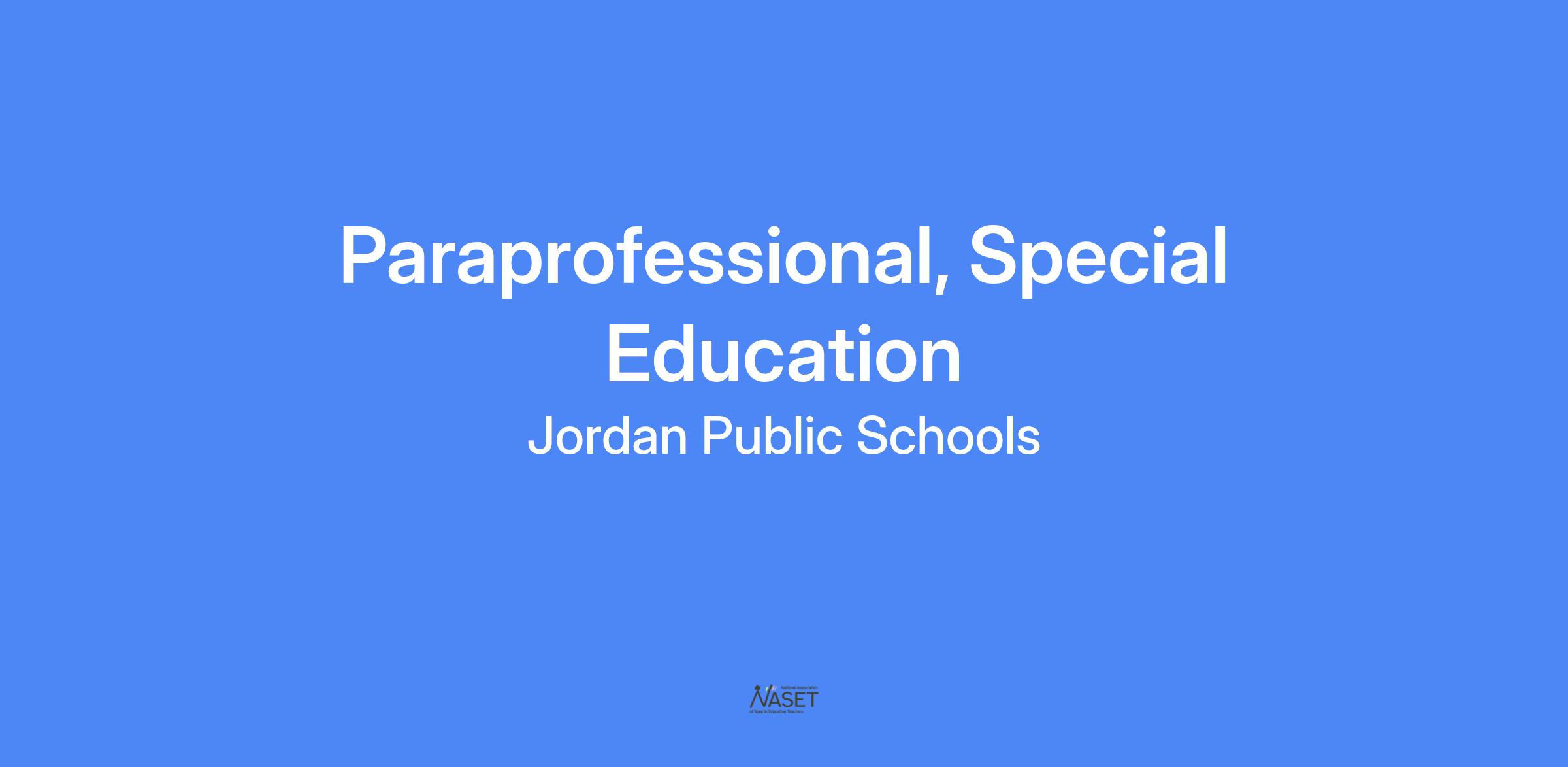 POSITION: 6.5 hours per day Special Education Paraprofessional for Jordan Elementary School.