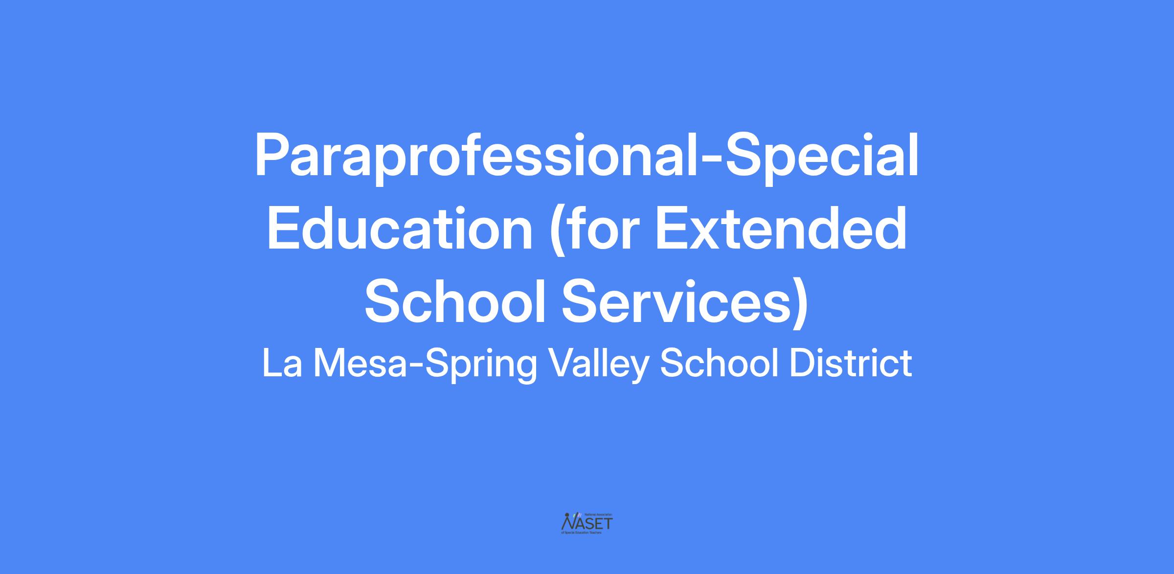 An examination will be given to establish an eligibility list for the position of ESS Paraprofessional-Special Education in order to fill existing and future vacancies. These positions are part-time, varying from 2.75 - 3.75 hours per day working with children who have learning, physical and emotional disabilities. Responsibilities may involve assistance with personal care and lifting.