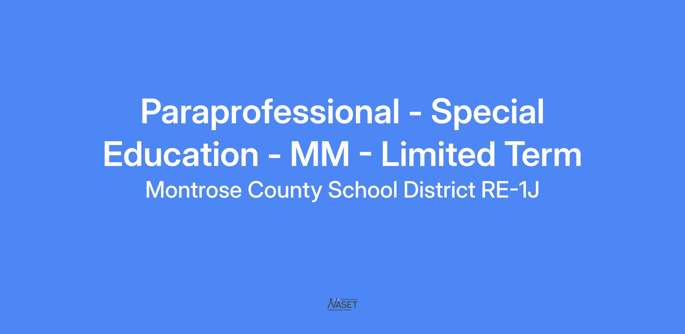Position Title: Special Education Paraprofessional - Mild/Moderate Need