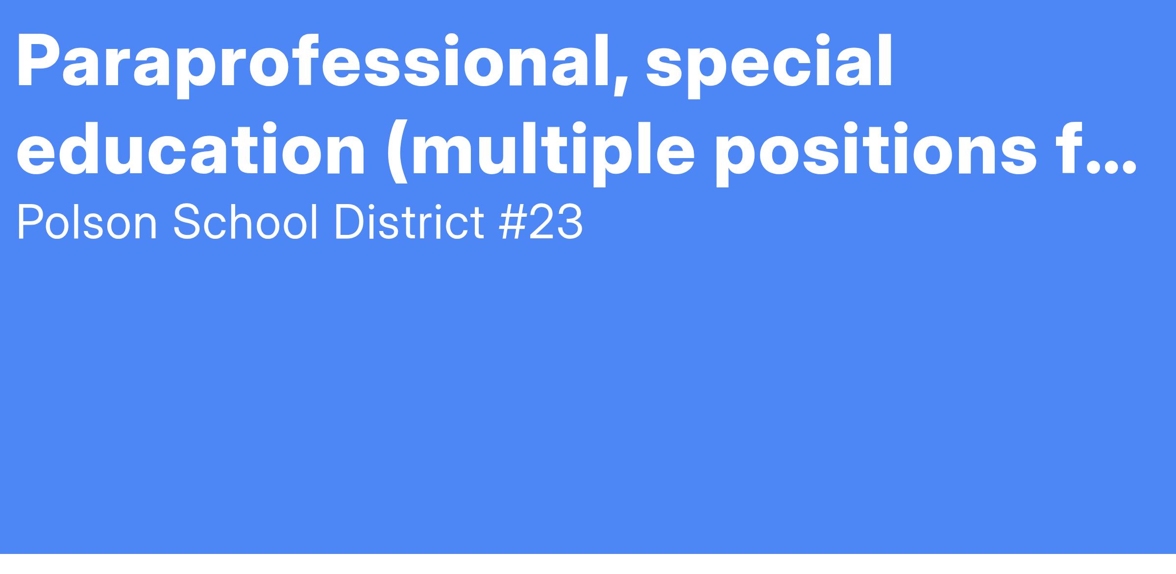 *If you are currently employed as a classified employee with the District and you are interested in a transfer to this position, please submit a resume and letter of interest to the Human Resource Department, Polson School District.