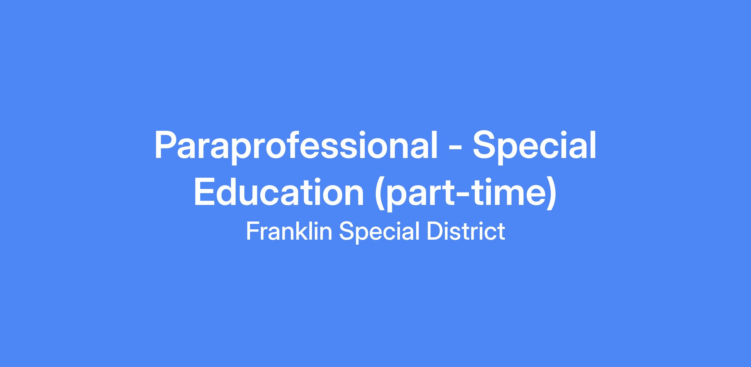 Description: Paraprofessional - Special Education (part-time)
