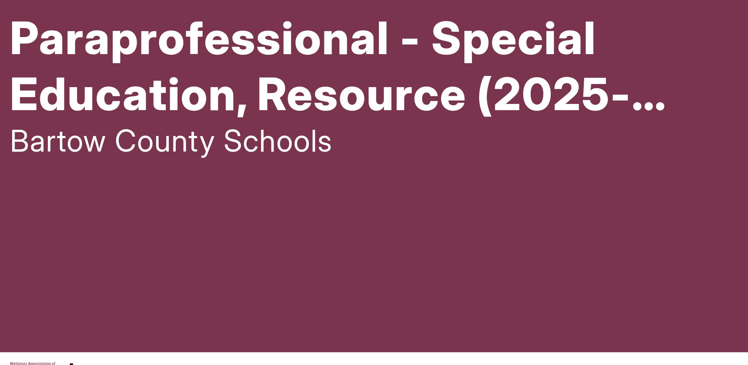 POSITION TITLE: Paraprofessional - Special Education, Resource for the 2025-2026 School Year