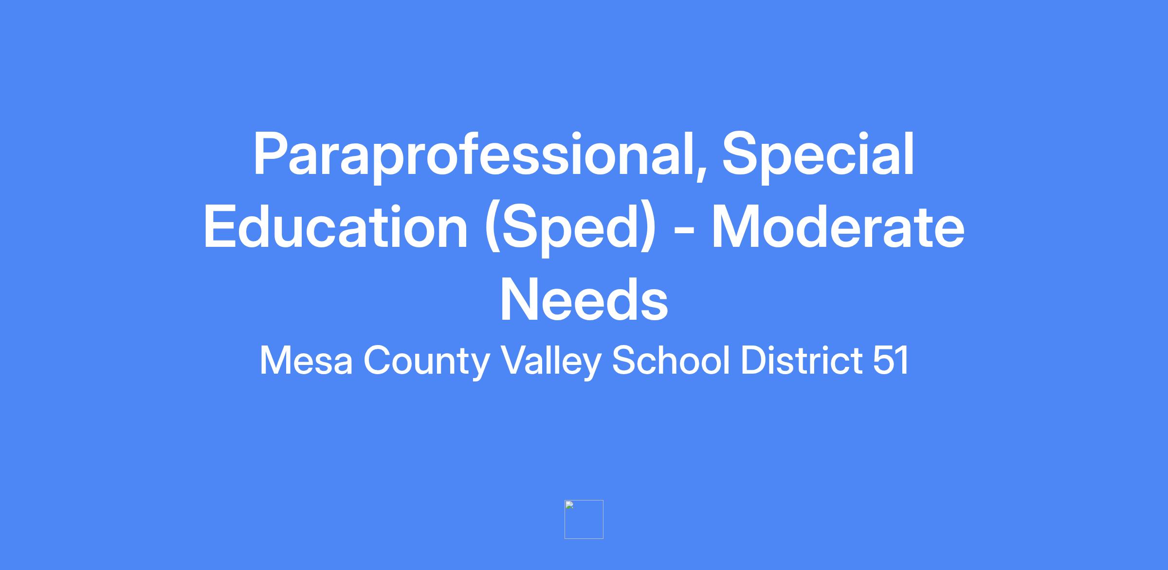 Position Type: Special Education - Support Staff/Paraprofessional, SPED Moderate Needs