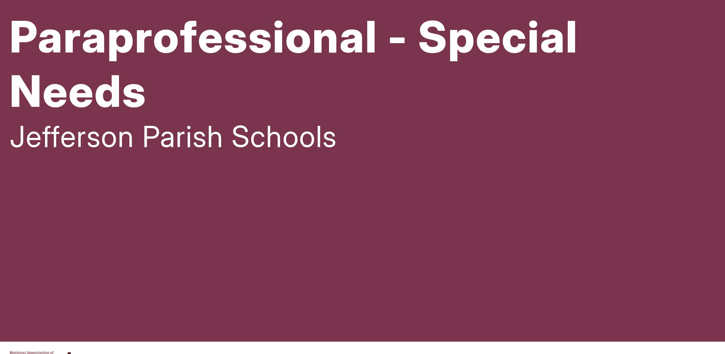 - This paraeducator will work in a variety of settings, dependent upon the students program needs.