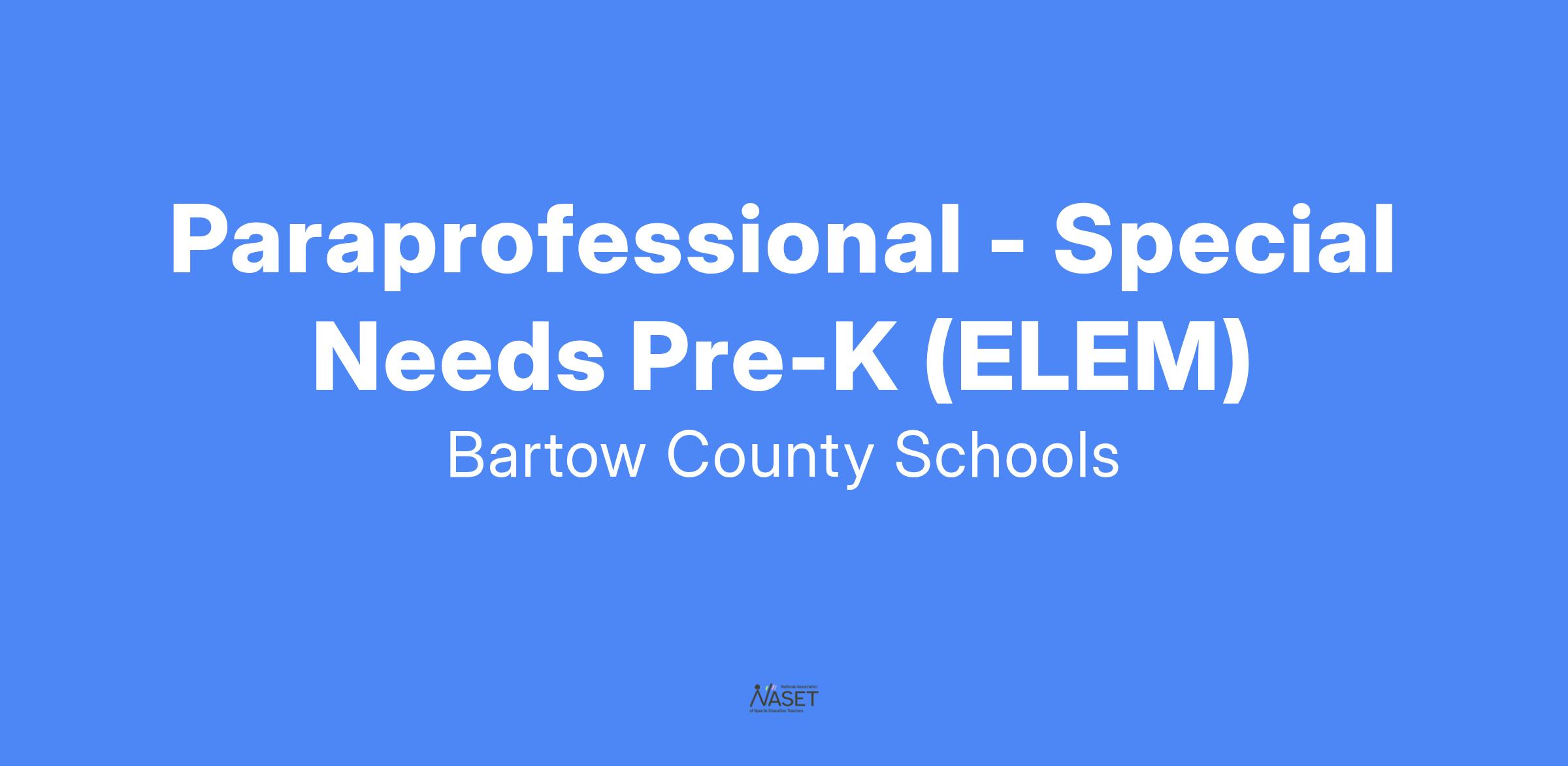 POSITION TITLE: Paraprofessional - Special Needs PreK for the 2025-2026 School Year