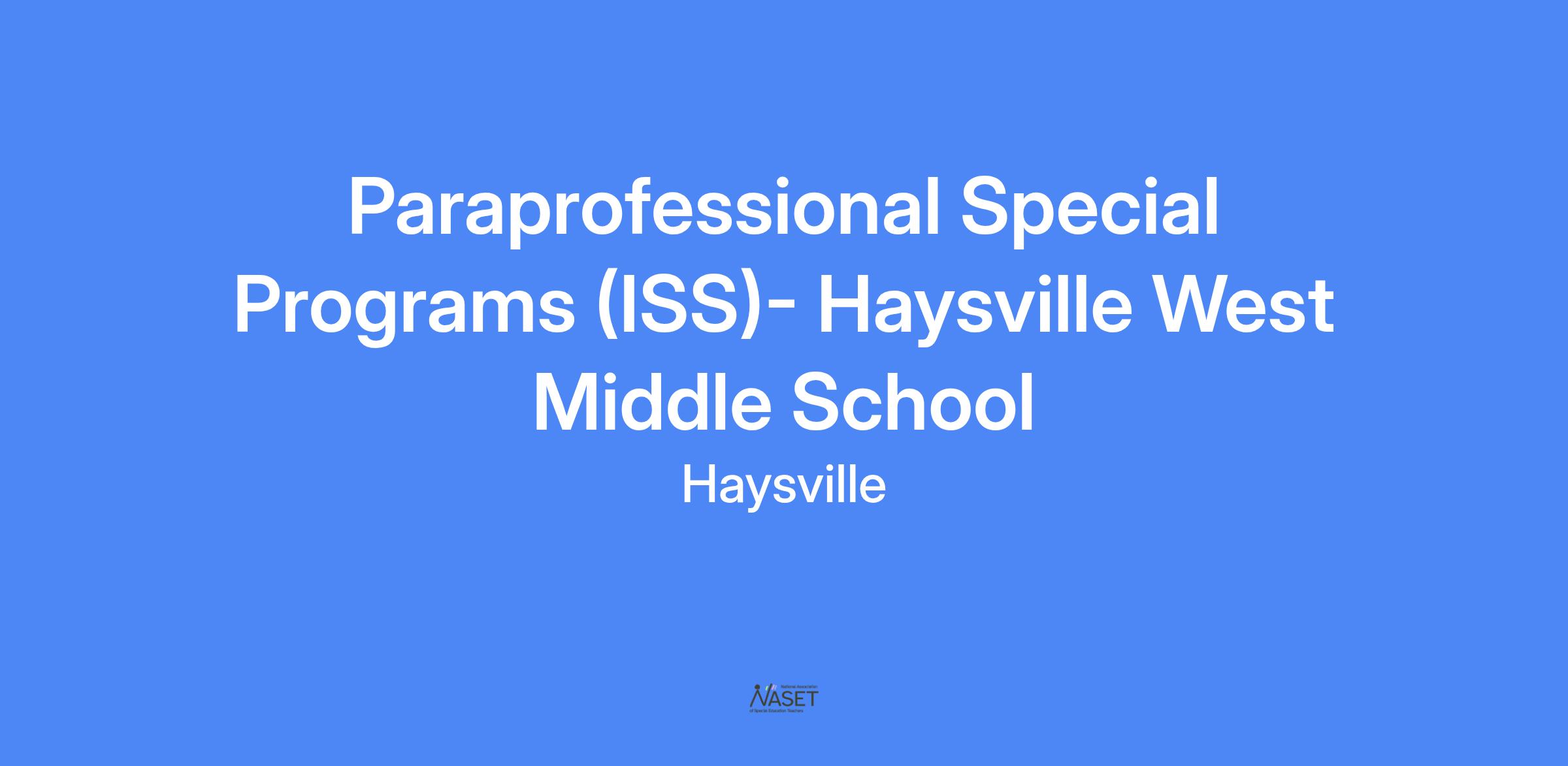 JOB TITLE: PARAPROFESSIONAL SPECIAL PROGRAMS