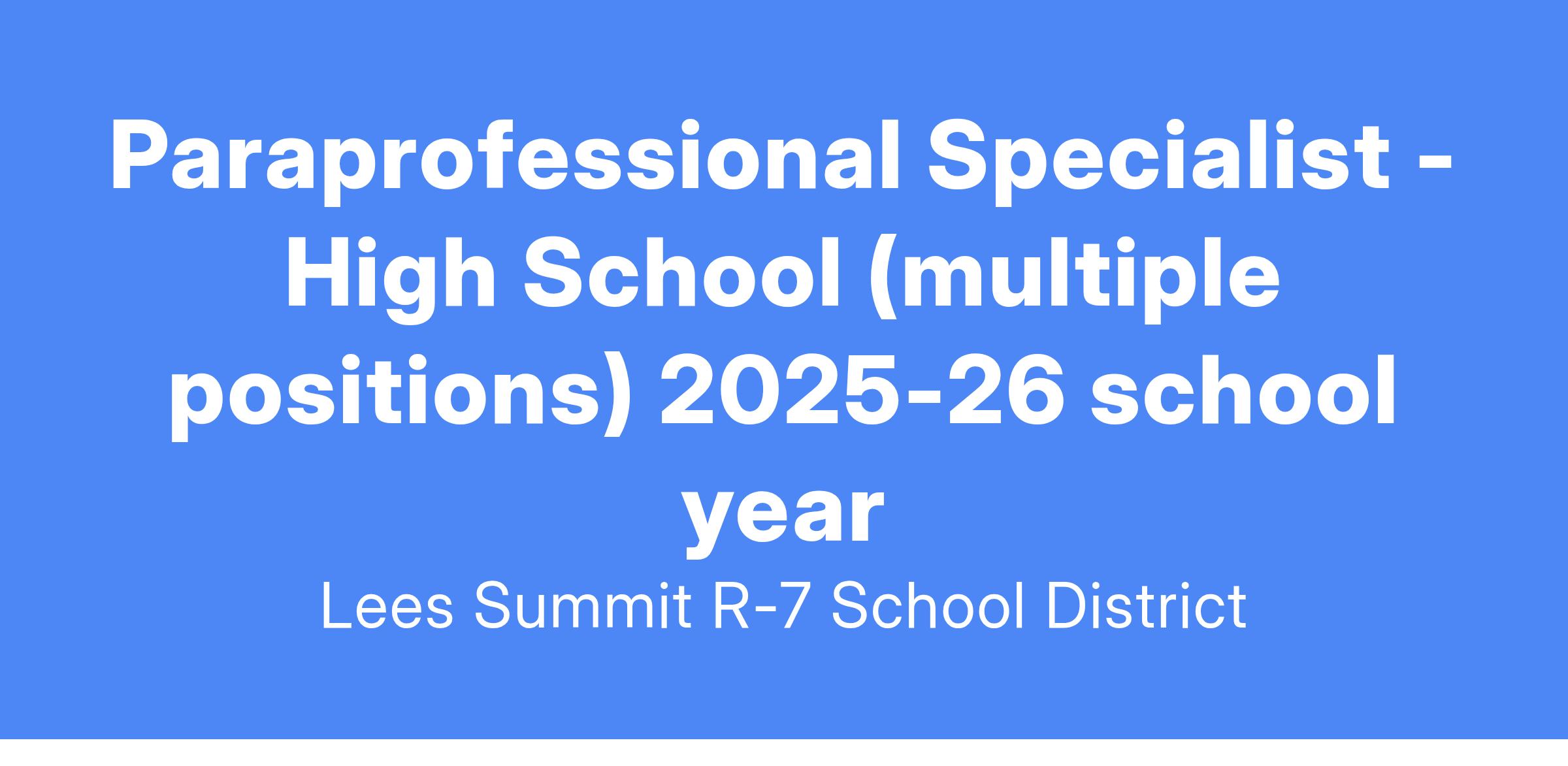 The job of Paraprofessional Specialist was established for the purpose/s of providing support to the instructional program within the assigned classroom with specific responsibility for working with at-risk students one-on-one; following educational and specific behavioral plans; documenting students’ daily activities, and modeling appropriate behaviors and interactions with student and staff.