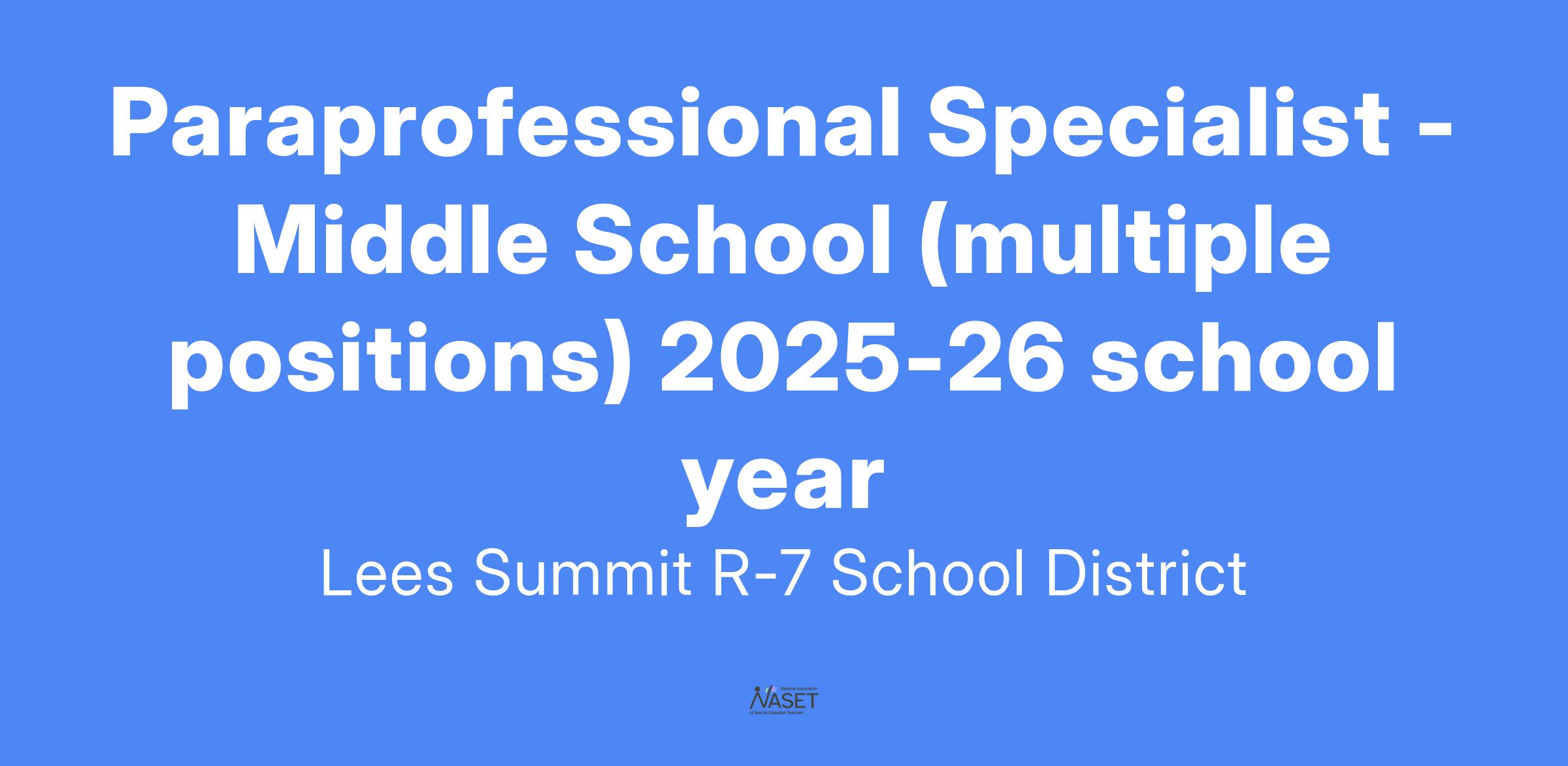 The job of Paraprofessional Specialist was established for the purpose/s of providing support to the instructional program within the assigned classroom with specific responsibility for working with at-risk students one-on-one; following educational and specific behavioral plans; documenting students’ daily activities, and modeling appropriate behaviors and interactions with student and staff.