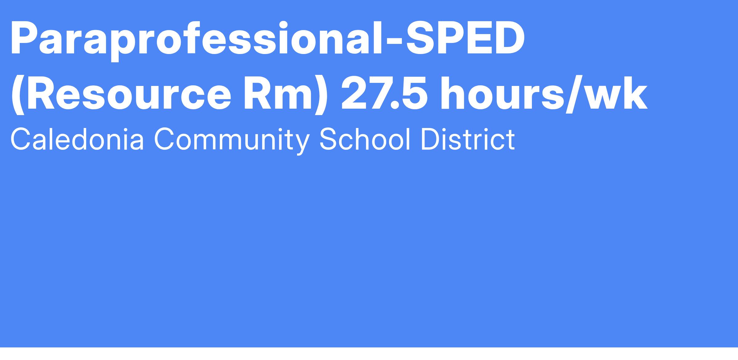 Position: Level 1 Paraprofessional (Special Education-Resource Room) Part-Time