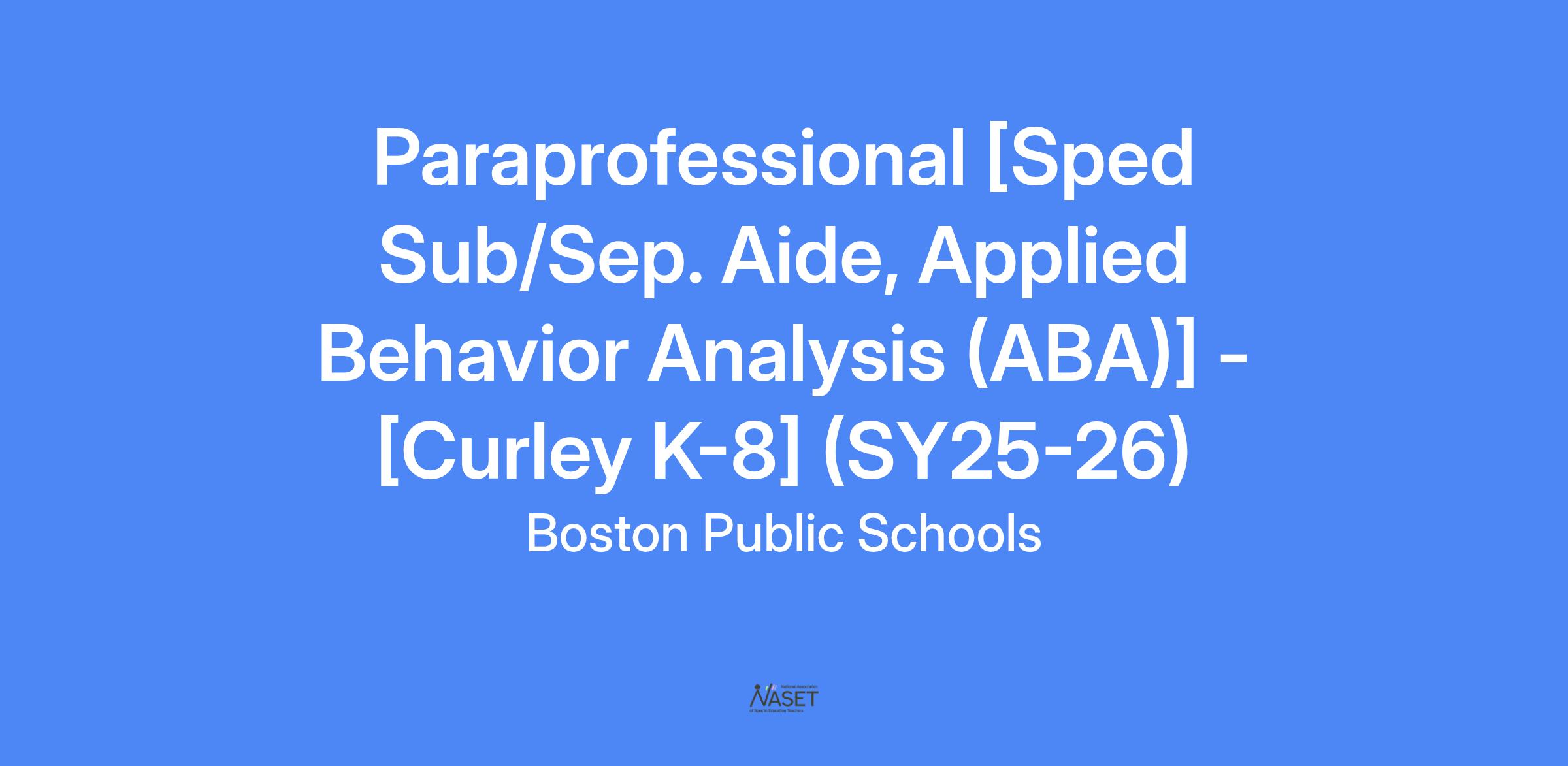 Paraprofessional [Sped Sub/Sep. Aide, Applied Behavior Analysis (ABA)] - [Curley K-8] (SY25-26)