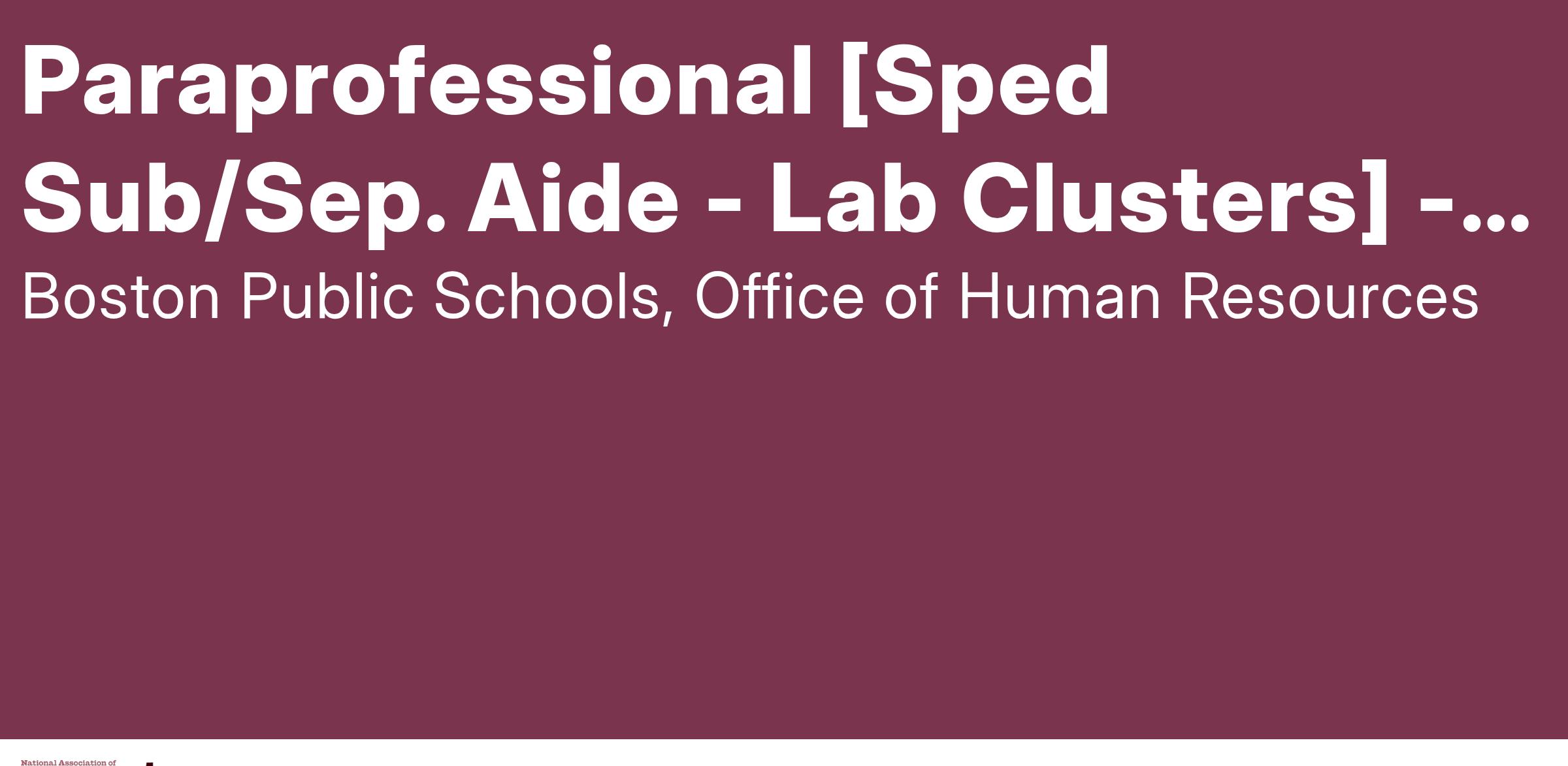 Paraprofessionals will assist teachers in providing an innovative, high quality education program designed to meet the needs of the children in the Boston Public Schools. Paraprofessionals will work with school staff to create an educational environment in which quality and continuity are key factors in educating the students of the Boston Public Schools.