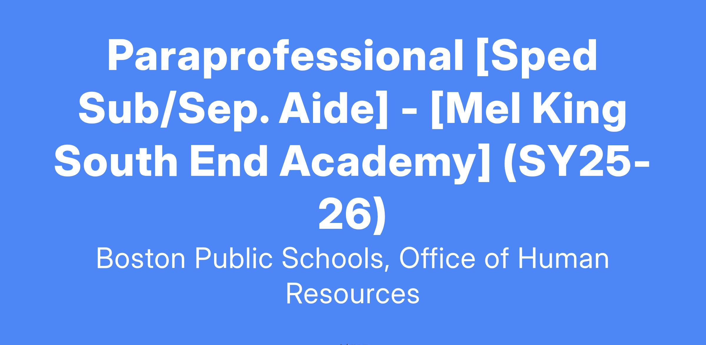 Paraprofessional [Sped Sub/Sep. Aide] - [Mel King South End Academy] (SY25-26)