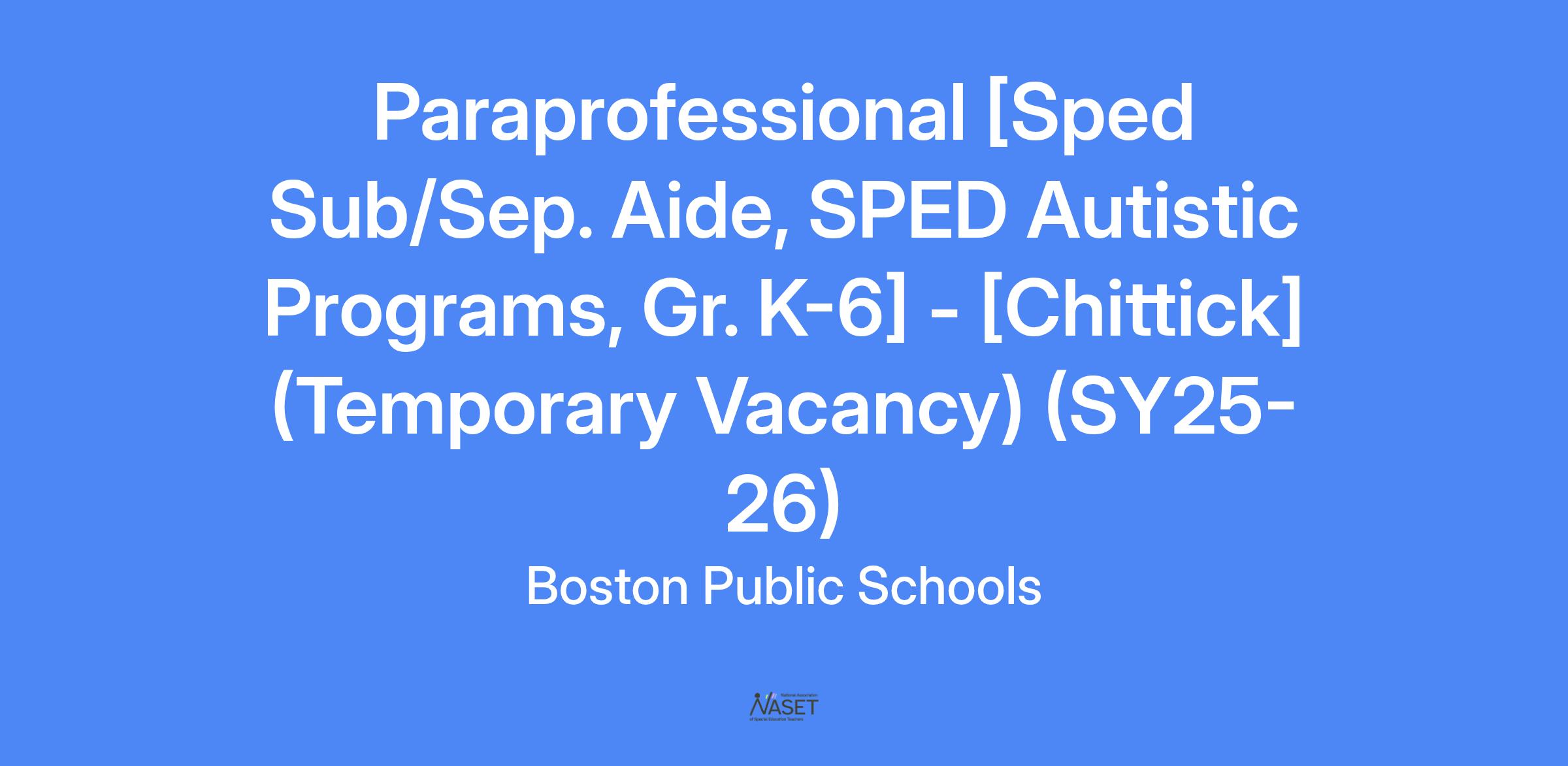 This position is a temporary vacancy covering for a paraprofessional on leave. The position is expected to end on 02/23/26 when the current paraprofessional returns to work. At that time, the covering paraprofessional will be terminated from the position.