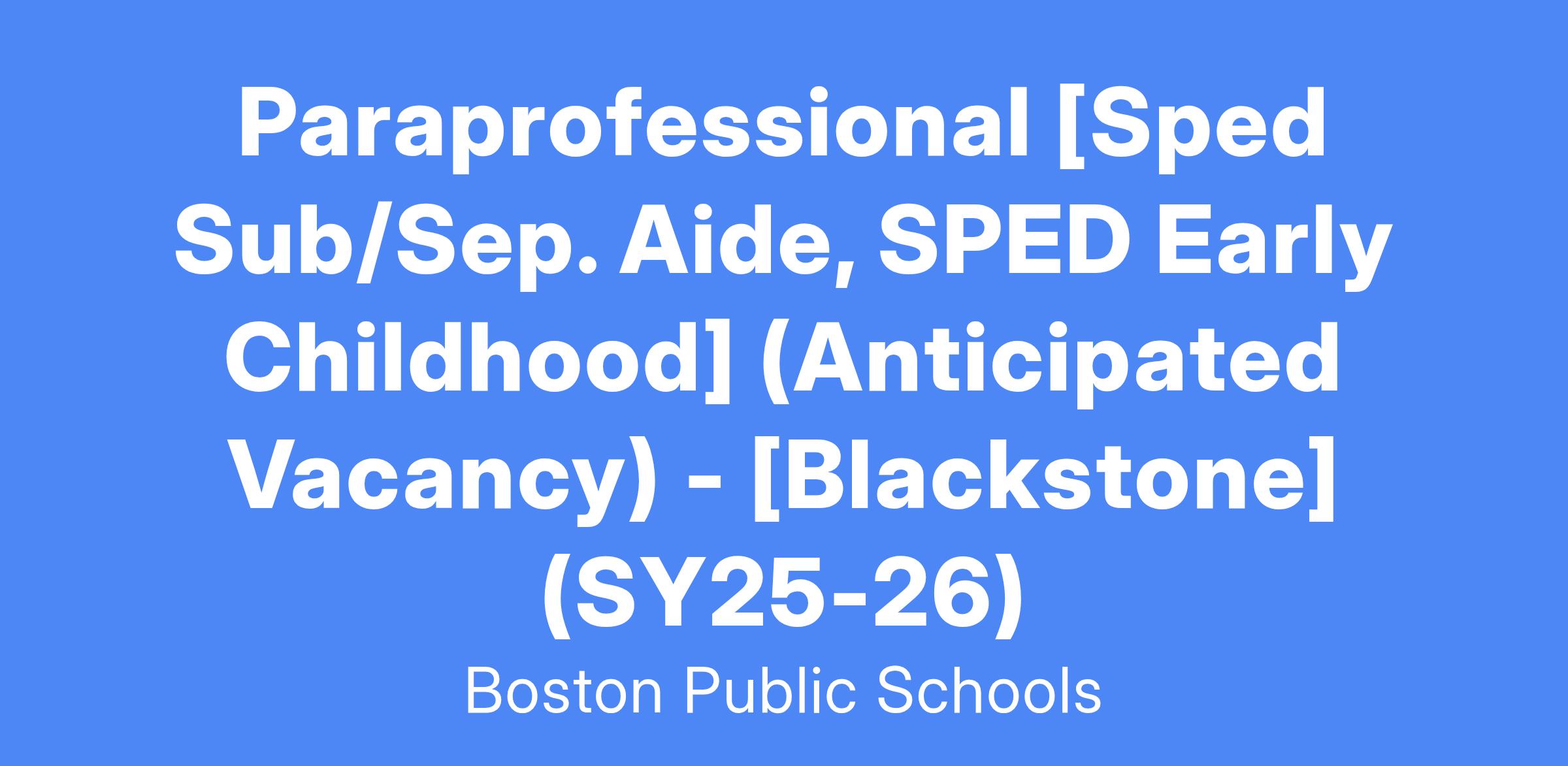 Paraprofessionals will assist teachers in providing an innovative, high quality education program designed to meet the needs of the children in the Boston Public Schools. Paraprofessionals will work with school staff to create an educational environment in which quality and continuity are key factors in educating the students of the Boston Public Schools.