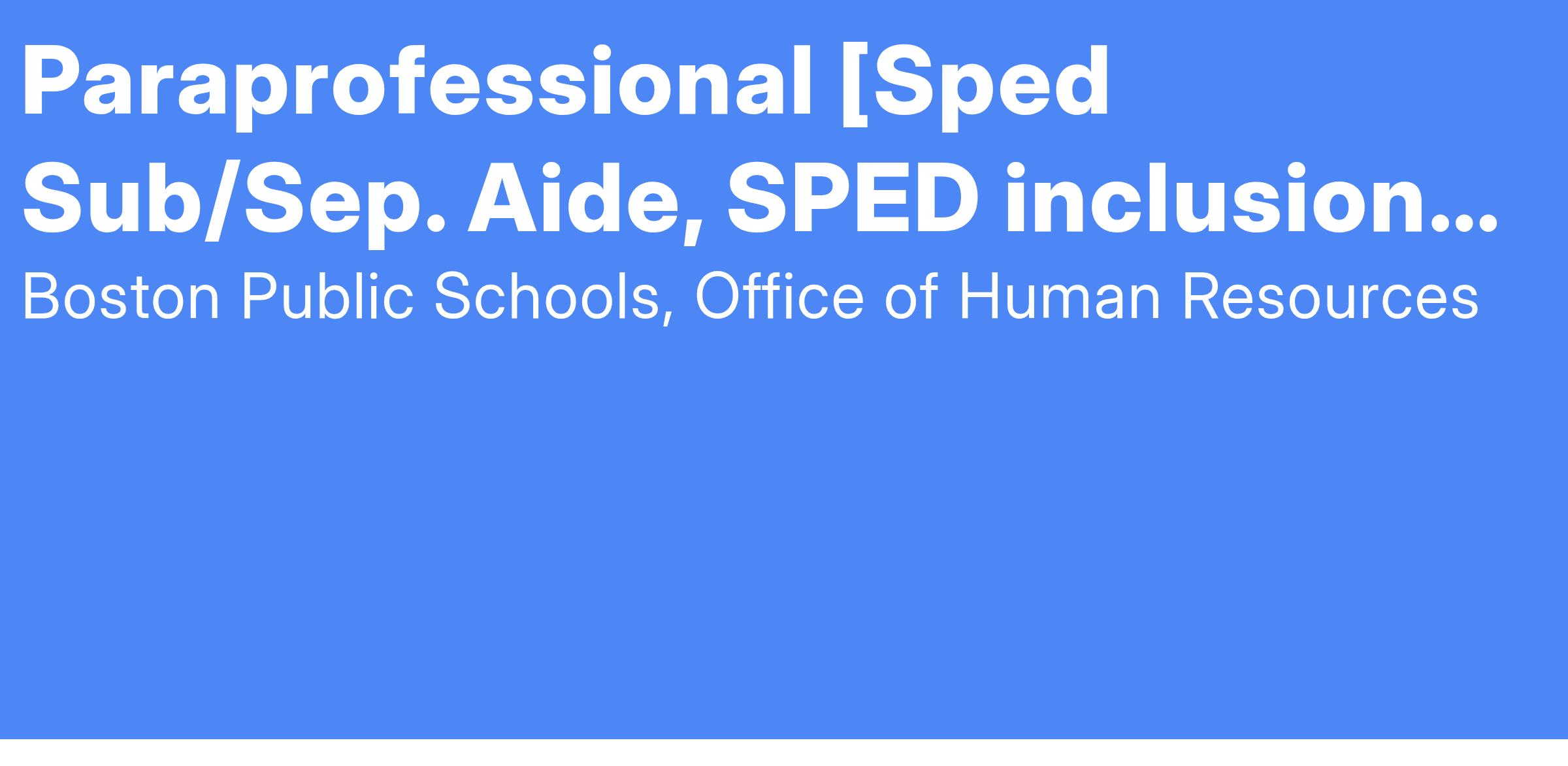 Paraprofessional [Sped Sub/Sep. Aide, SPED inclusion Programs] - [Brighton High](SY25-26)